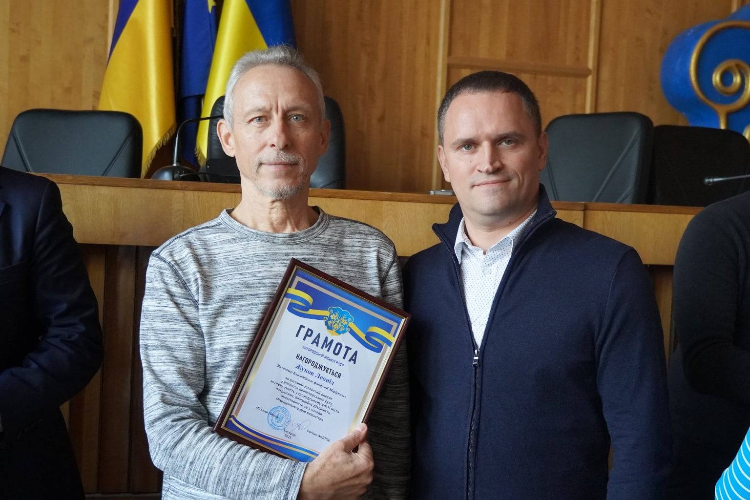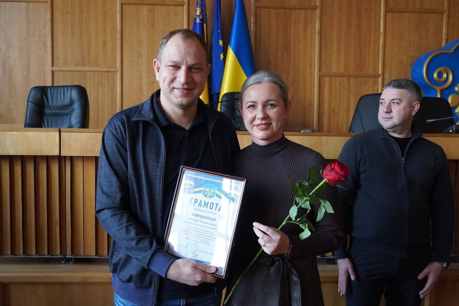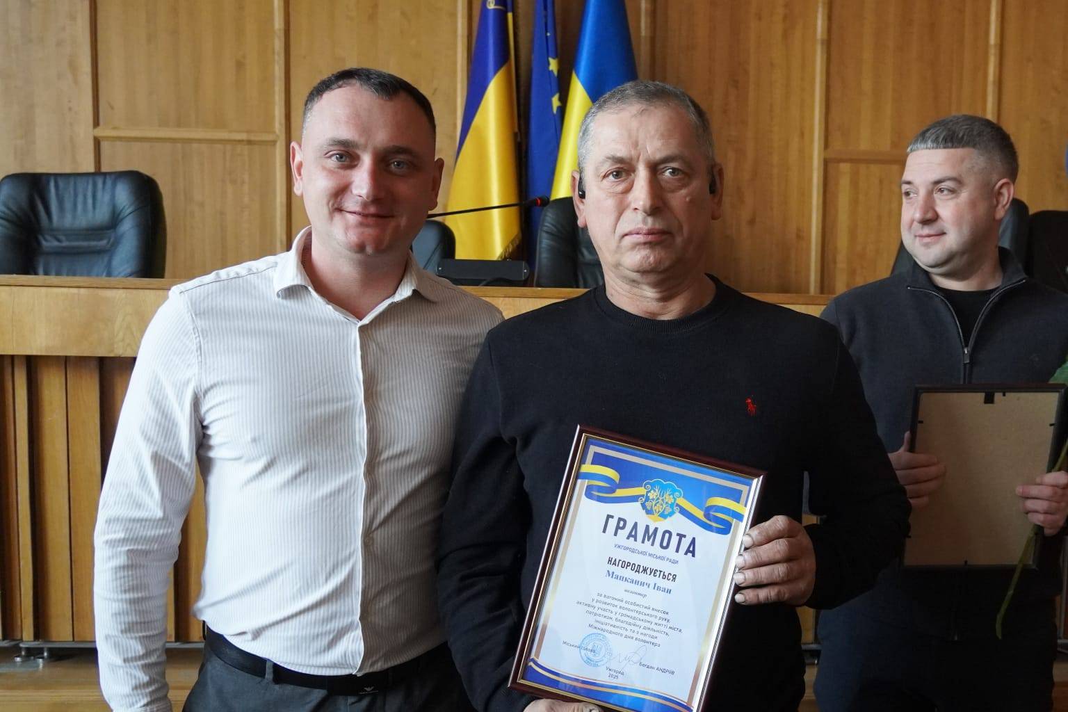 Слова вдячності від громади міста – за підтримку наших захисників, за допомогу переселенцям, соціально вразливим ужгородцям, за участь у численних благодійних ініціативах висловили і секретар міської ради Ігор Чорній, заступники міського голови Іван Завидняк, Михайло Маргіта, керуючий справами виконкому міської ради Василь Пинзеник.