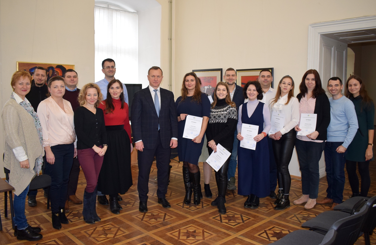 Богдан Андріїв вручив сертифікати працівникам Ужгородської міської ради, які пройшли навчання у рамках спільного проєкту міст-побратимів Ужгорода та Кошице