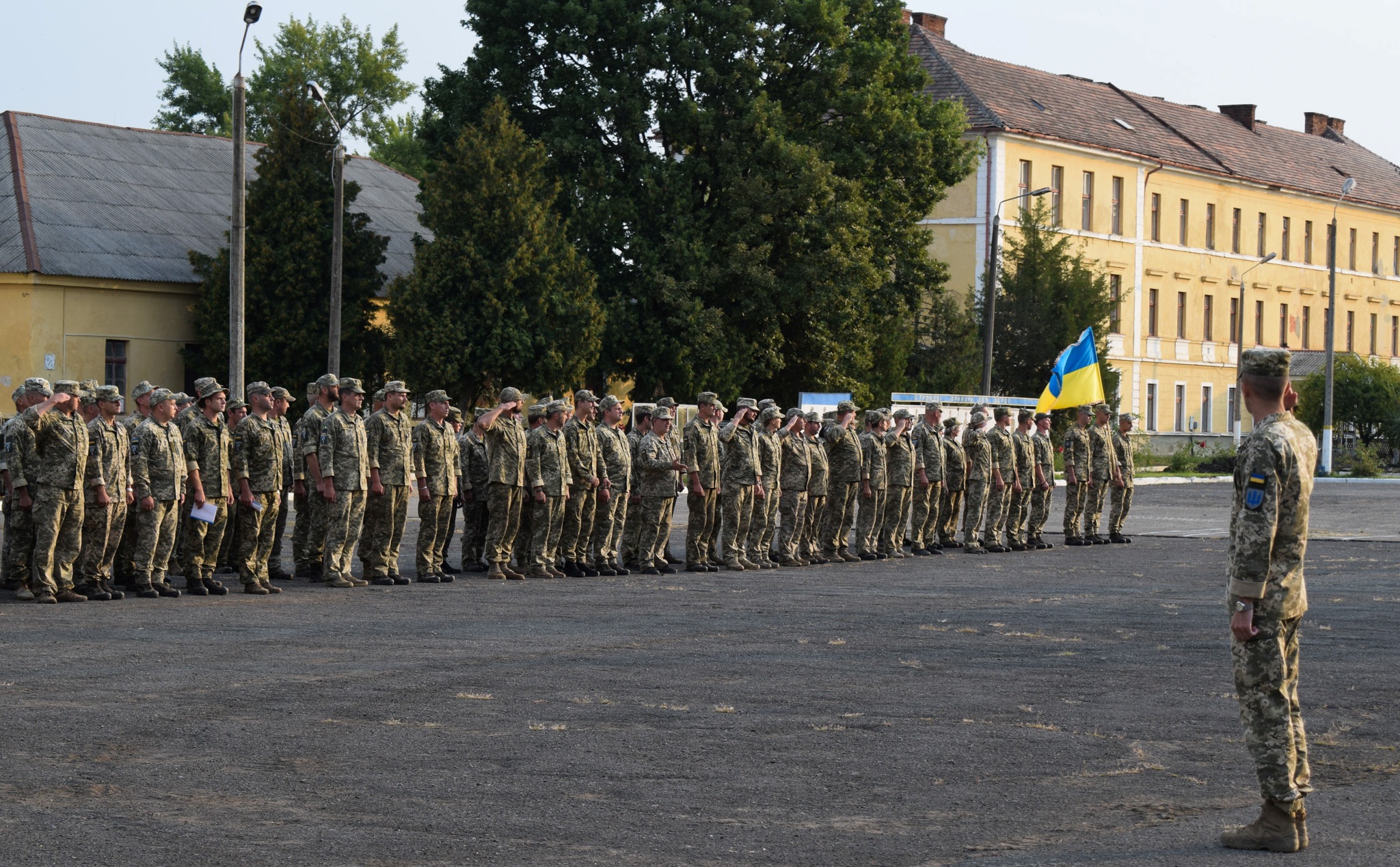 Військовослужбовці військової частини А 1556, що дислокується в Ужгороді, розпочали сьогодні день із урочистостей з нагоди двох державних свят – Прапора України та 28-ї річниці Незалежності.