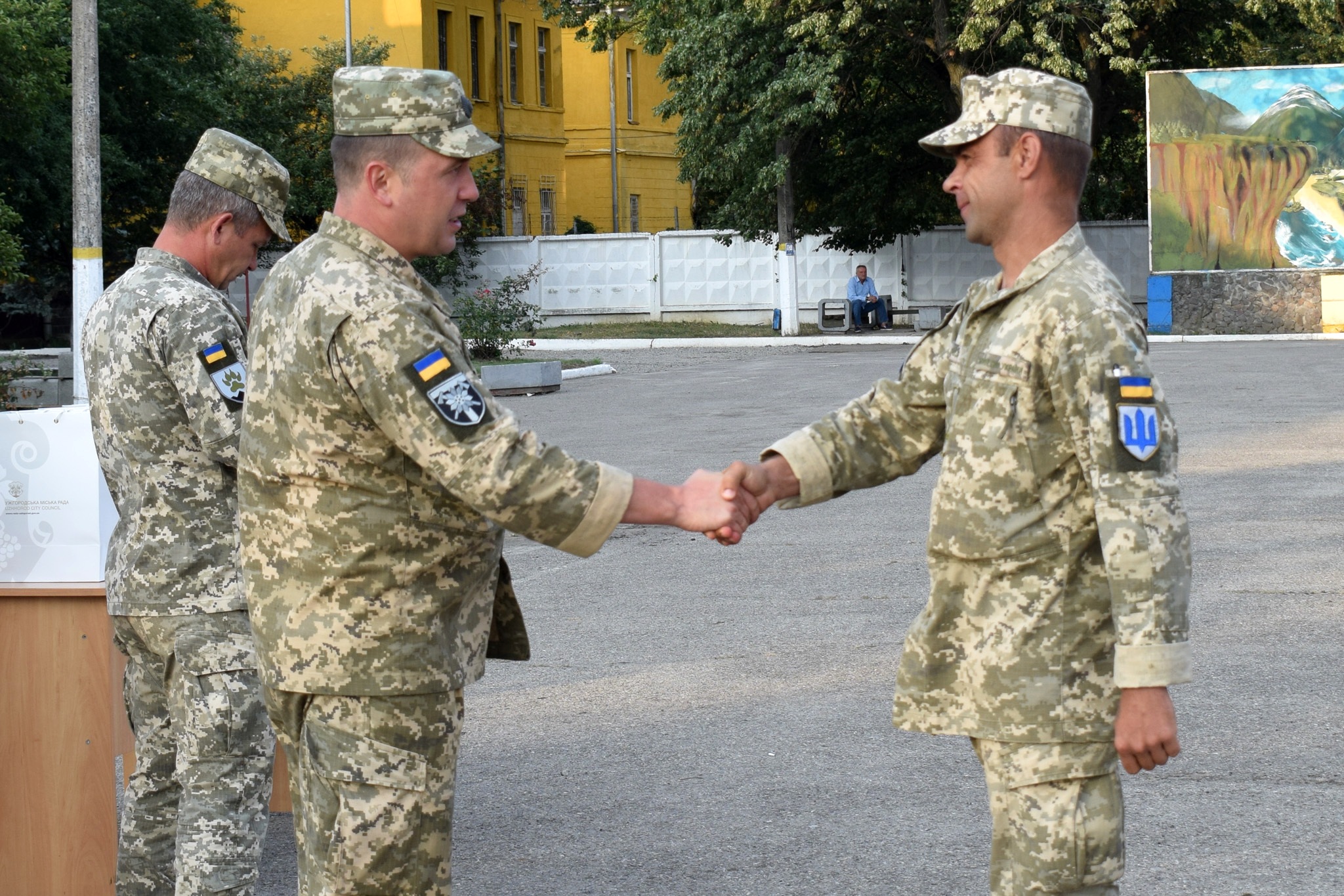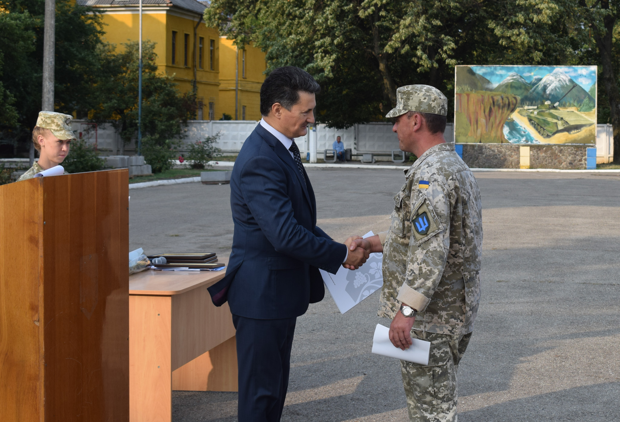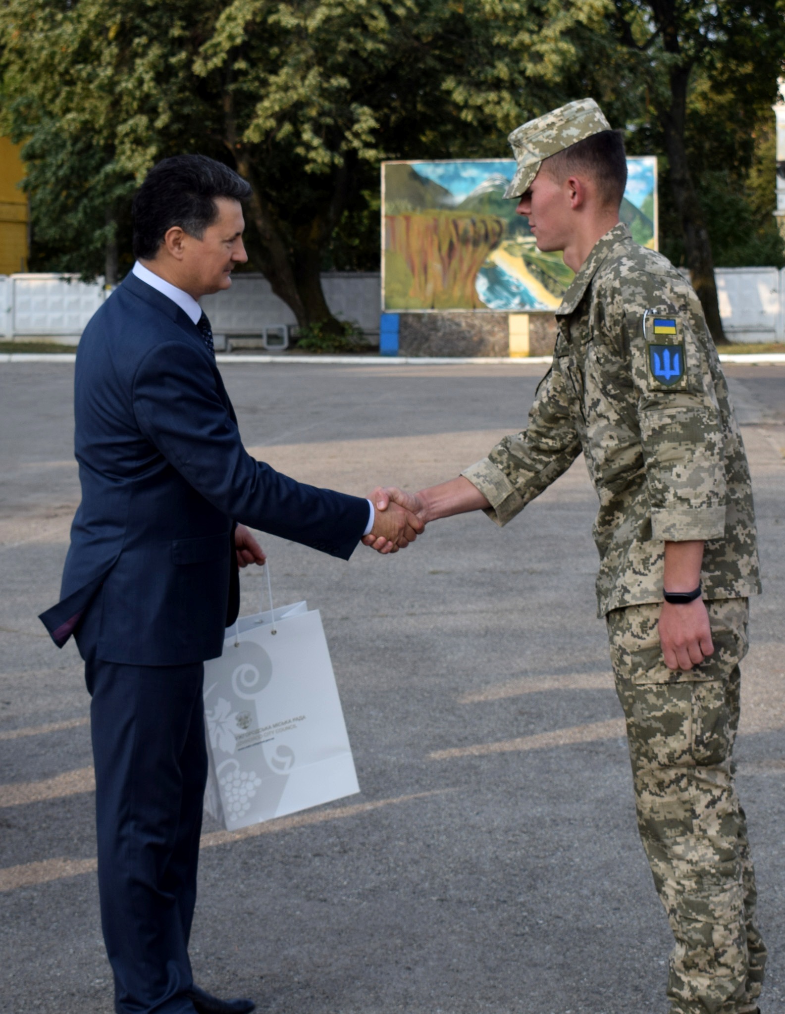 Від імені міського голови Богдана Андріїва, від громади Ужгорода за бездоганне виконання службового обов’язку, вірність присязі та народу України подякував воїнам в.о. міського голови, заступник міського голови Ігор Фартушок. За зразкову військову дисципліну, високі показники у службово-бойовій діяльності та з нагоди Дня незалежності України грамотами Ужгородської міської ради та подарунками нагородили молодшого сержанта Валентина Воробея, молодшого сержанта Володимира Іванківа, старшого солдата Віталіну Музику, прапорщика Сергія Остапчука, солдата Томаша Тростянюка.