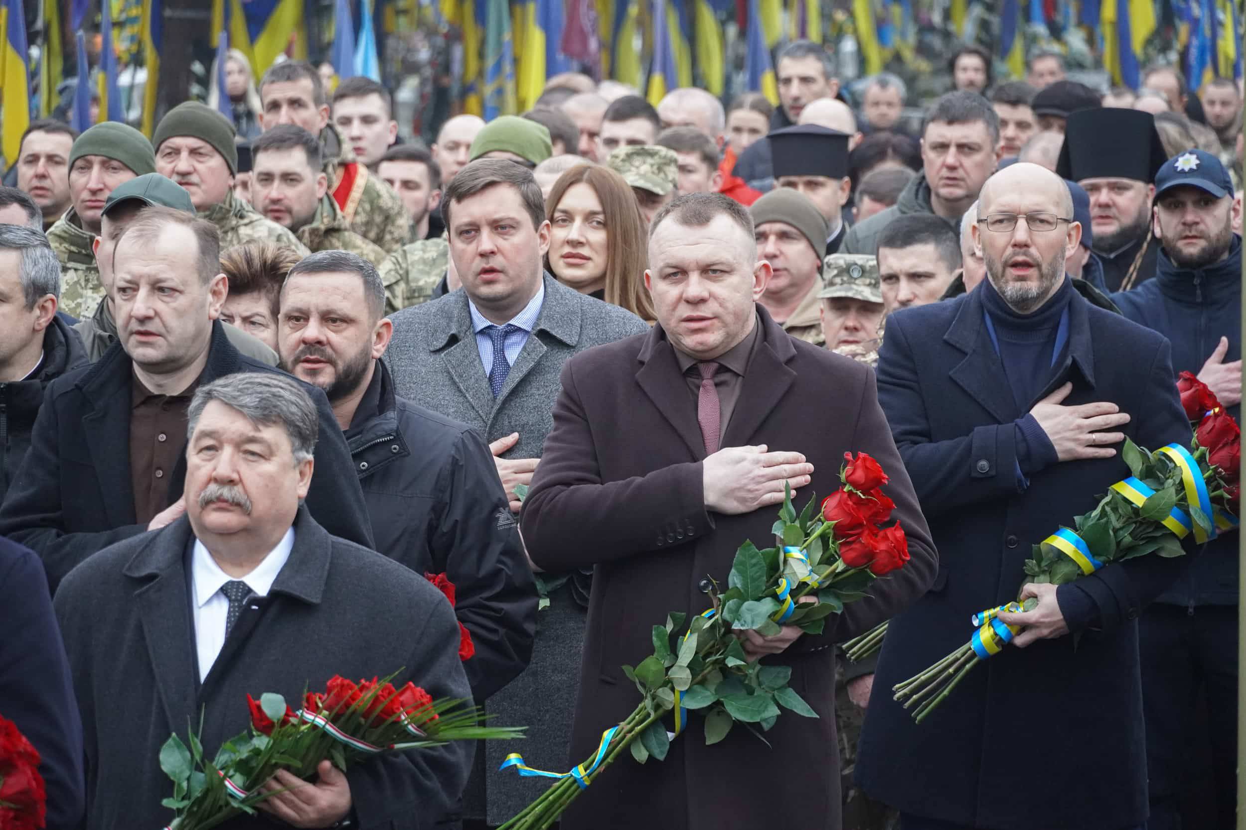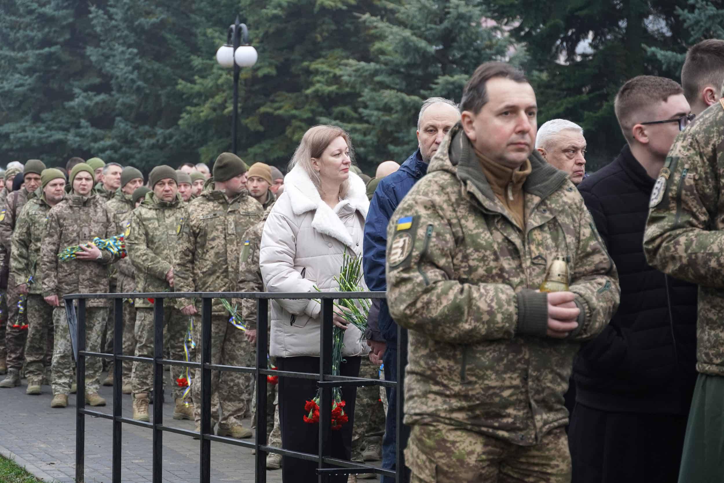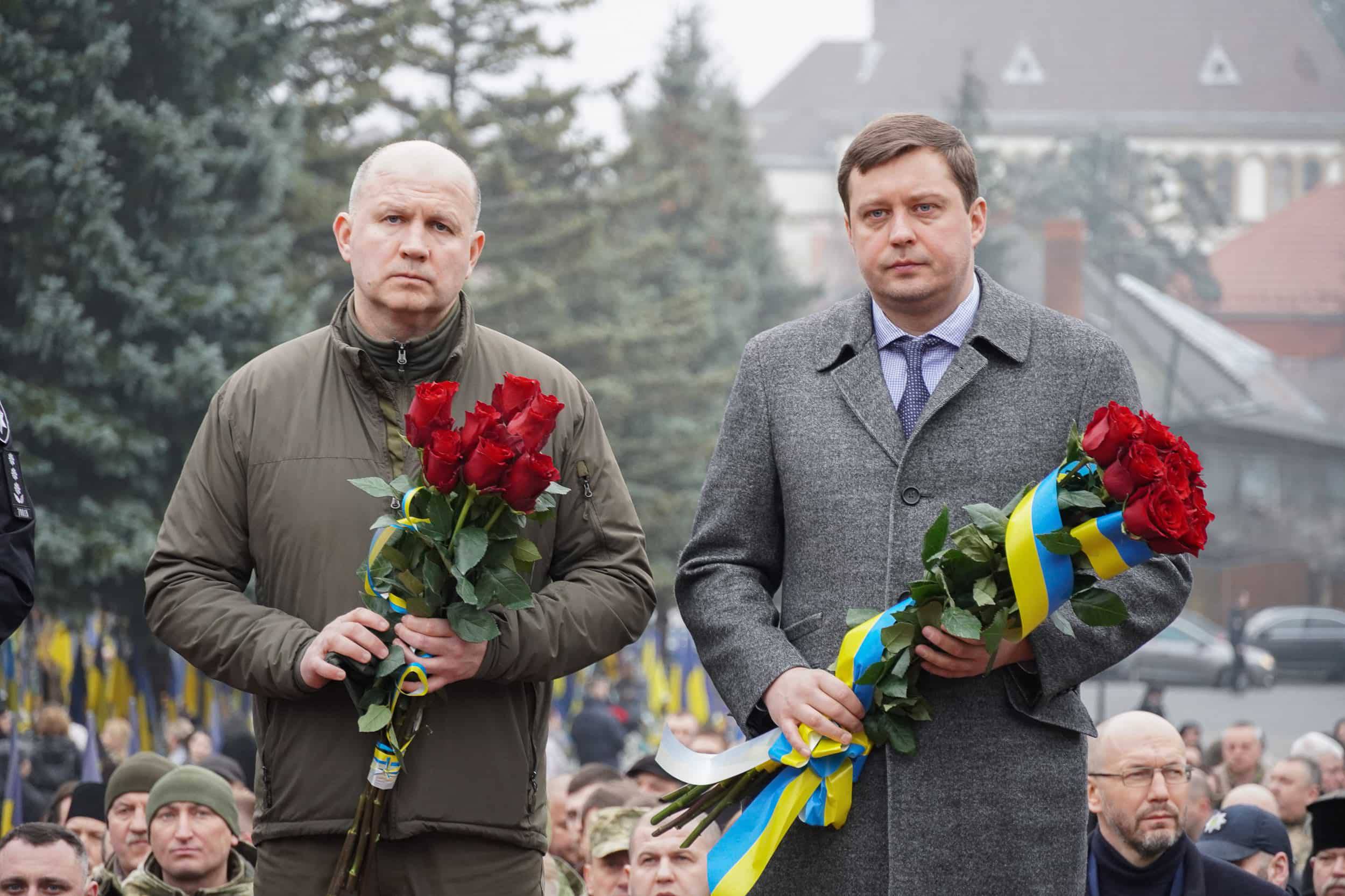Керівники області, міста, військові, представники дипломатичних представництв, духовенство, рідні загиблих воїнів зібралися о 9 ранку на загальнонаціональну хвилину мовчання на Пагорбі Слави в Ужгороді, щоб вшанувати пам'ять захисників, які пожертвували життям заради держави та кожного з нас.