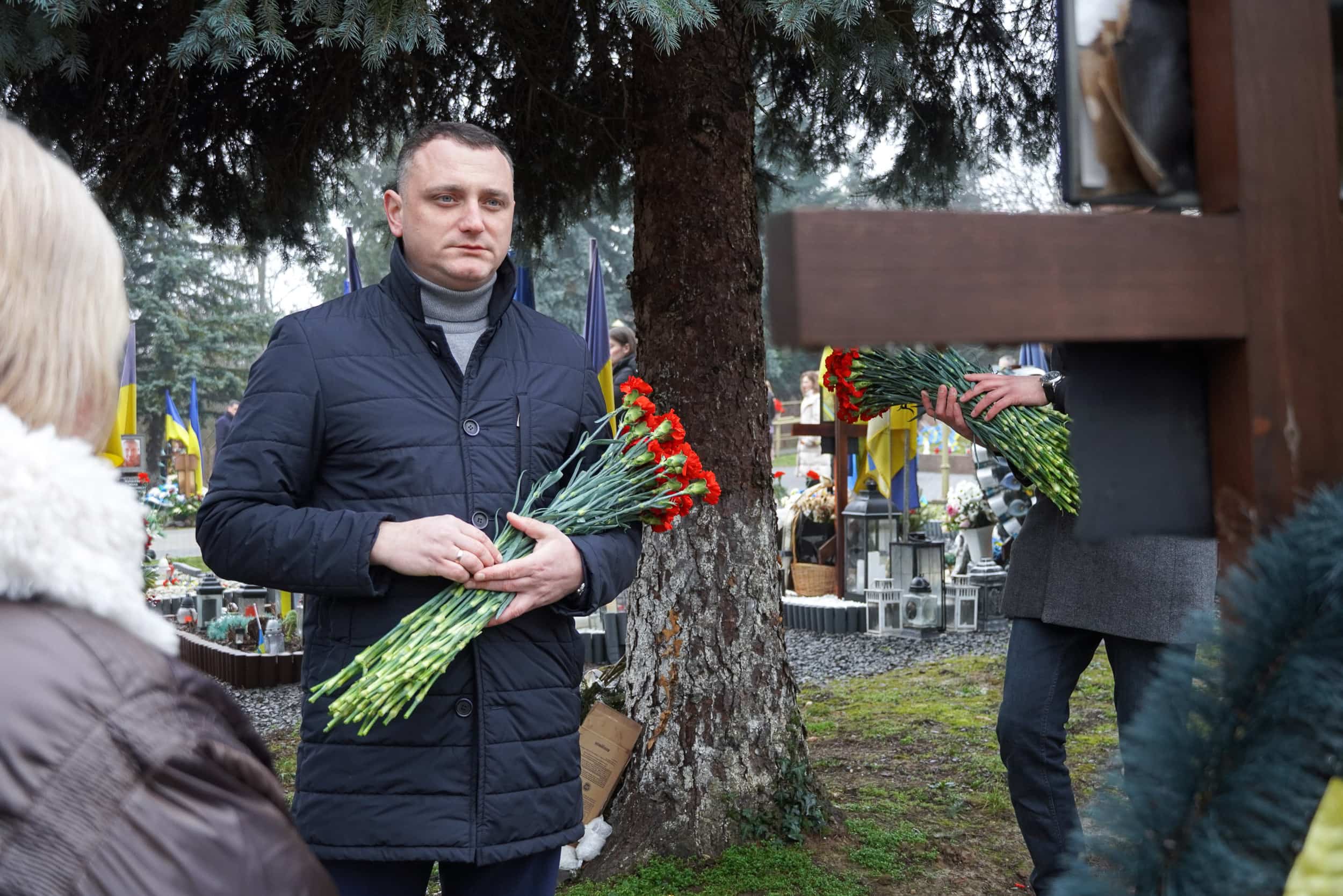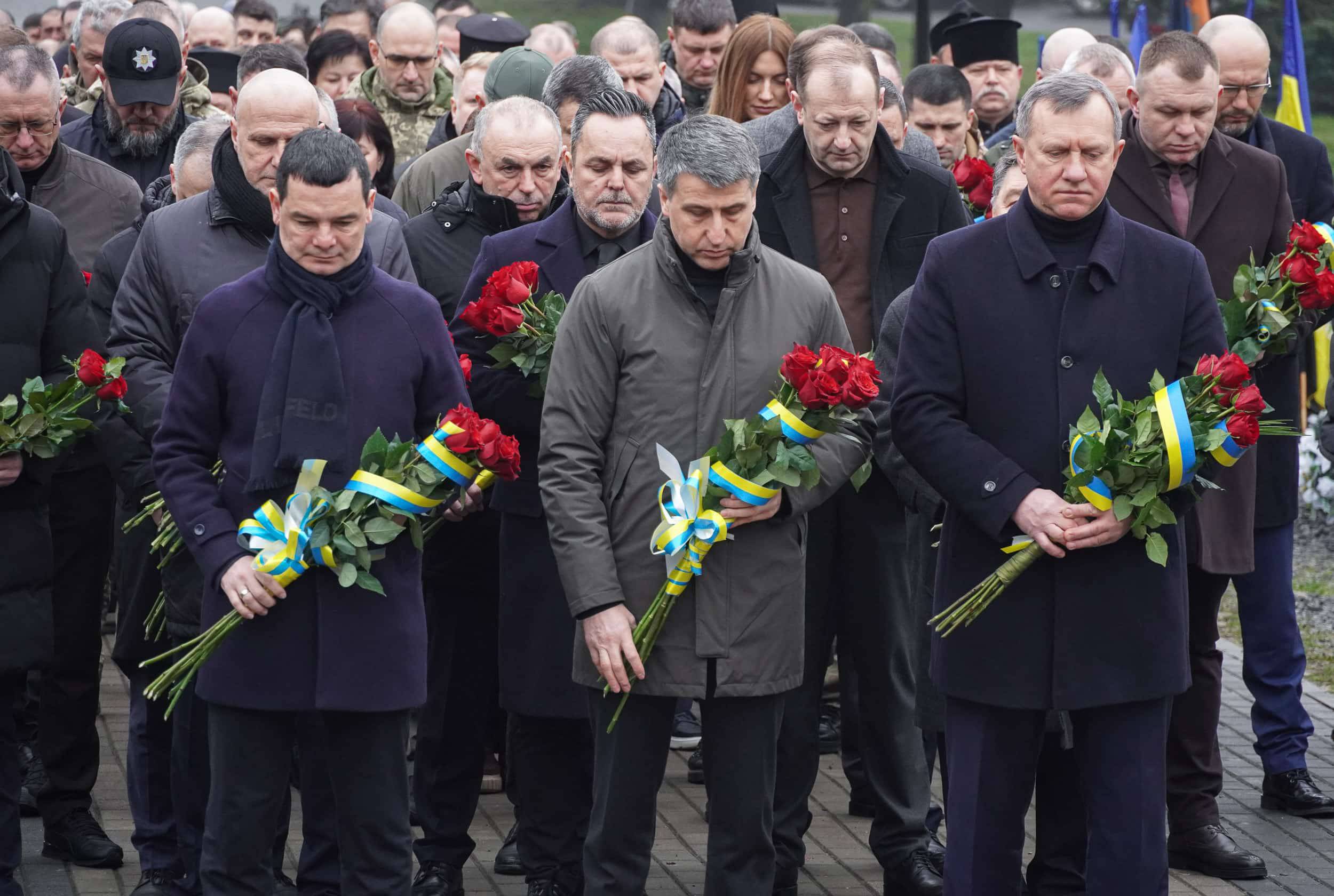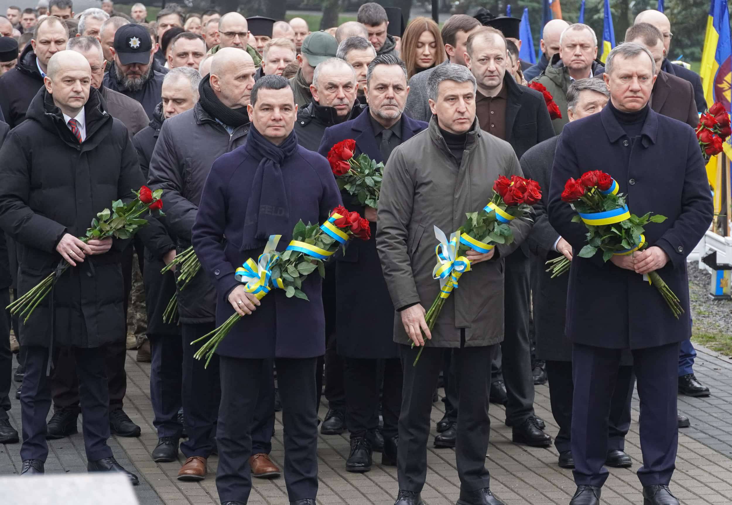 Керівники області, міста, військові, представники дипломатичних представництв, духовенство, рідні загиблих воїнів зібралися о 9 ранку на загальнонаціональну хвилину мовчання на Пагорбі Слави в Ужгороді, щоб вшанувати пам'ять захисників, які пожертвували життям заради держави та кожного з нас.