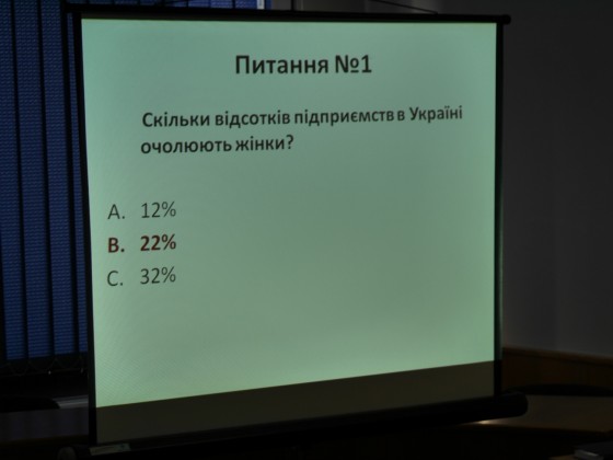 Кандидат наук із державного управління, керівник Центру тендерної освіти при УжНУ Маріанна Колодій навела цікаві дані соціологічного опитування. Зокрема, 22% підприємств в Україні очолюють жінки, тоді як у середньому в світі – 19%. Однак підприємств малого бізнесу, де всю відповідальність за управлінські рішення беруть жінки – 57%.