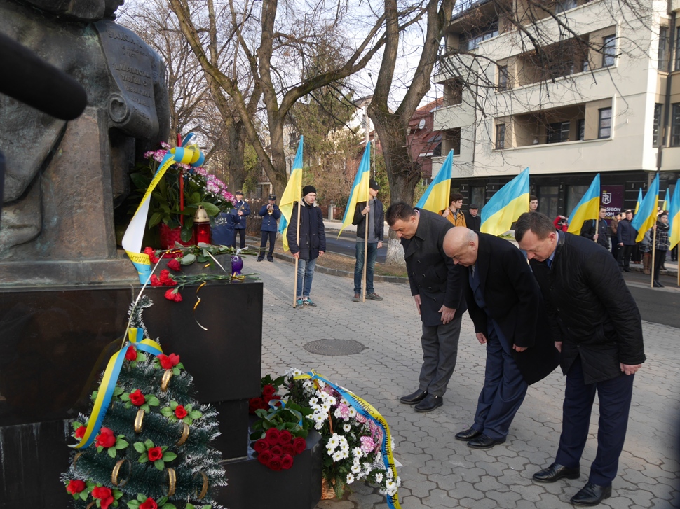 Урочистості відбувалися на набережній Незалежності. Квіти до пам’ятника Президента Карпатської України, Героя України Августина Волошина поклали керівники області та міста – Геннадій Москаль, Михайло Рівіс, Богдан Андріїв, правоохоронних та силових структур, військовослужбовці, представники дипломатичних установ, громадськості.