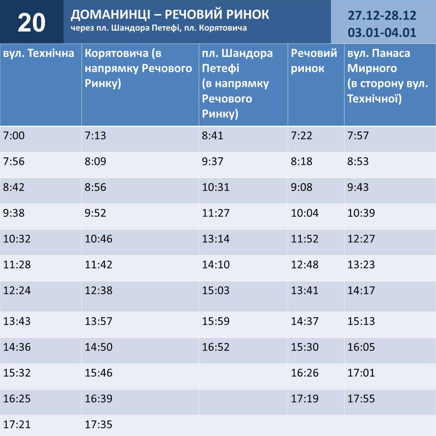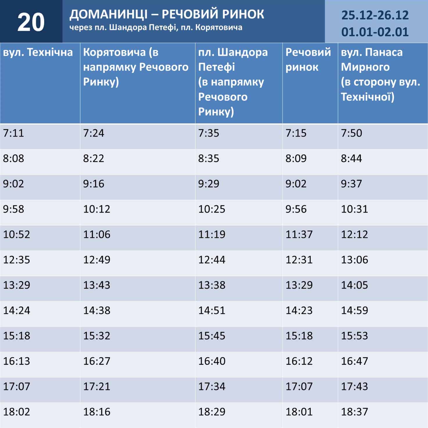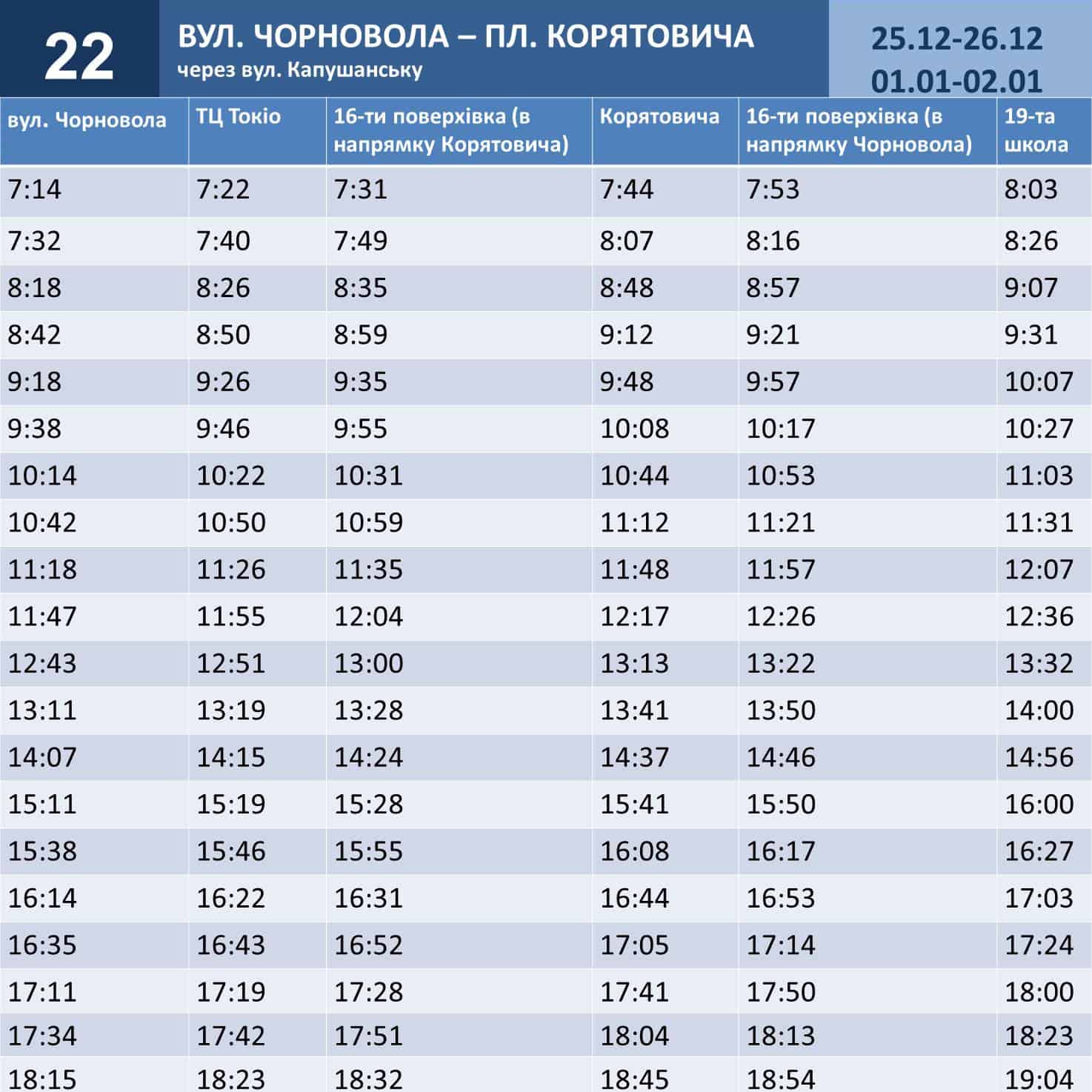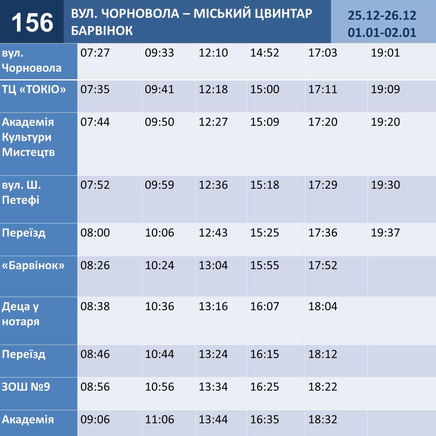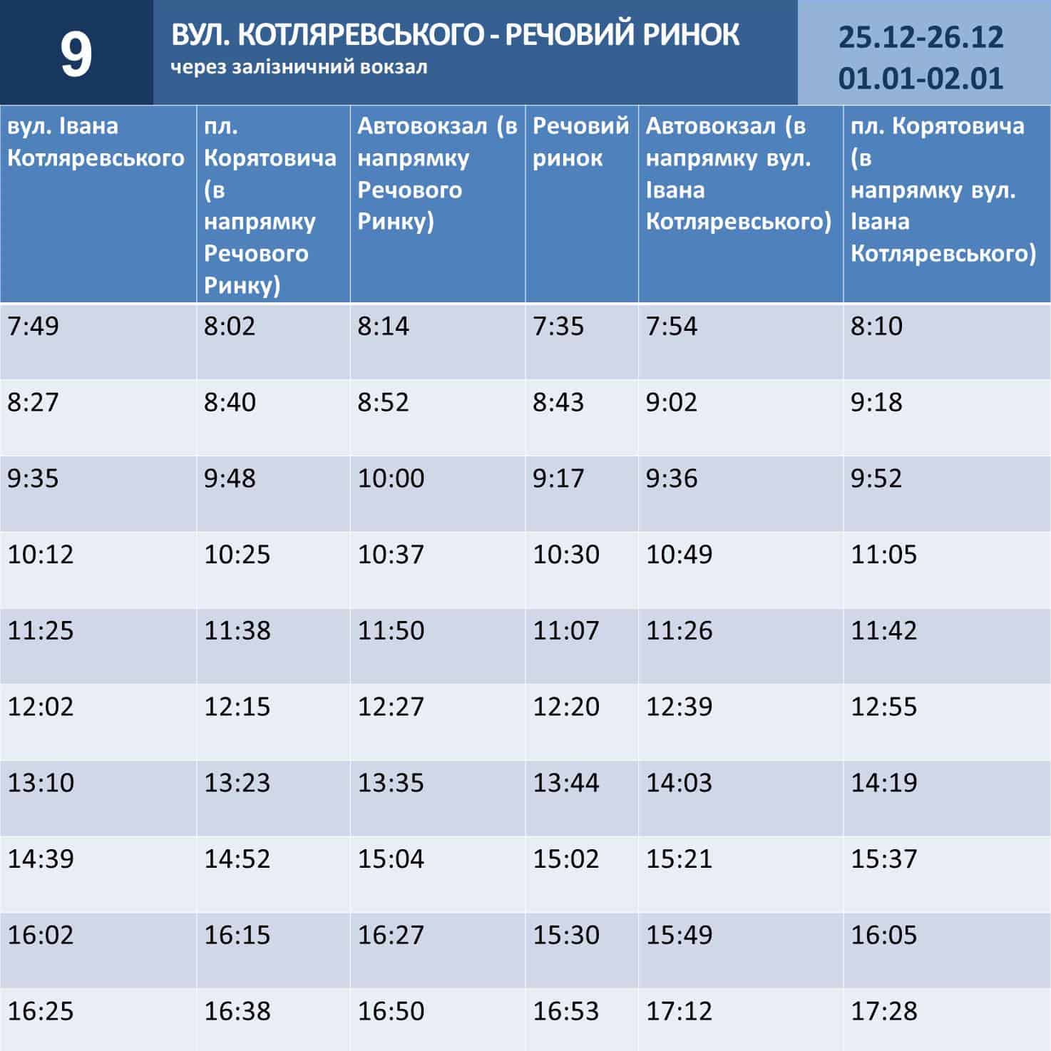 Актуальні графіки руху автобусів №№ 9, 11, 18, 20, 22, 24 та 156 у період різдвяно-новорічних свят
