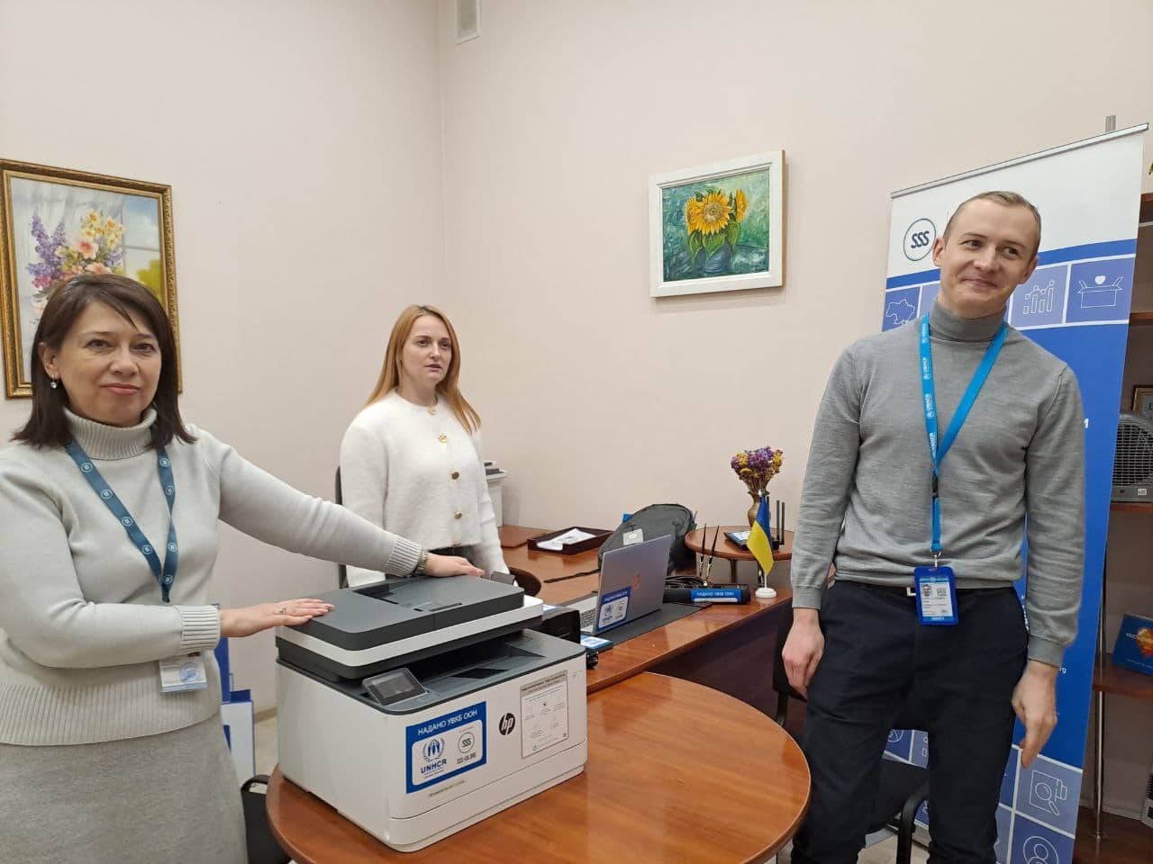 Допомогу отримали у межах реалізації проєкту «Підтримка спроможності системи соціального захисту населення щодо реєстрації внутрішньо переміщених осіб» за підтримки Управління Верховного комісара ООН у справах біженців. Департамент соцполітики розробляє Соціальний паспорт Ужгородської територіальної громади, для реалізації першочергових завдань паспорта і надали техніку та канцтовари.