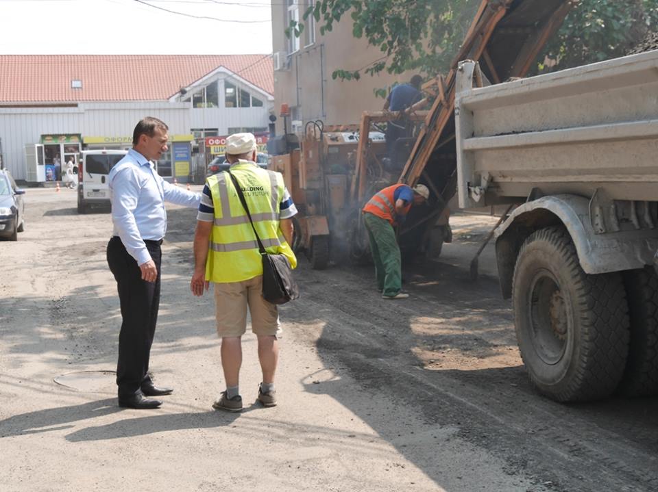 Роботи проводить підрядна організація Сем Білдінг, сьогодні знімають асфальт фрезою, завтра-післязавтра, наскільки дозволить погода, вирівняють дорожнє полотно новеньким асфальтом. Як тривають роботи, сьогодні оглянув міський голова Ужгорода Богдан Андріїв.
