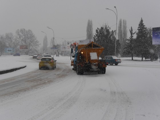 Через сильний сніг сьогодні в Ужгороді працівники комунального підприємства КШЕП посилено працюють на дорогах міста. Зокрема, підсипають протиожеледною сумішшю транспортні кола, мости, пішохідні переходи, перехрестя, вулиці, де найбільше автобусних маршрутів, автобусні зупинки, тротуари. Вулиці з крутими підйомами, оскільки там обмежений доступ для спецтехніки, комунальники підсипають вручну.