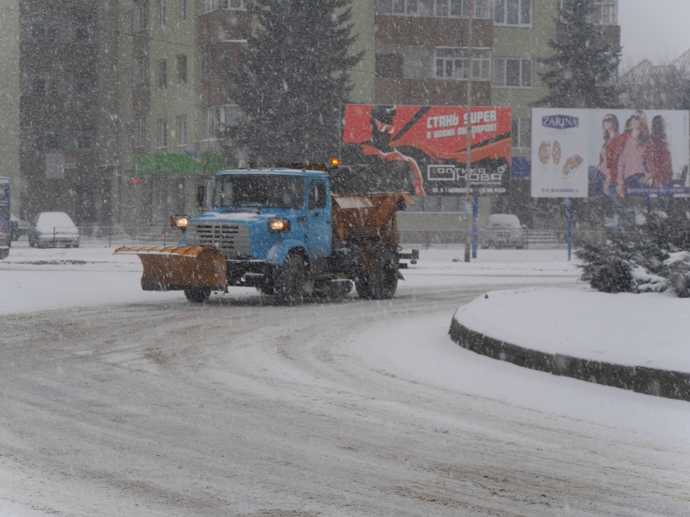 Через сильний сніг в Ужгороді комунальники посилено працюють на дорогах міста