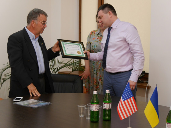 Делегація з міста-побратима Ужгорода – американського Корвалліса, яку очолює Почесний громадянин нашого міста Пітер Бобер, сьогодні в Ужгородській міській раді зустрілася із заступниками міського голови Василем Гомонаєм та Олександром Білаком, керівником ЦНАПу Жанною Павлув, начальниками управління освіти Мариною Пуківською, відділу охорони здоров’я Василем Решетарем і міжнародних грантових програм та інновацій Вікторією Тарахонич.