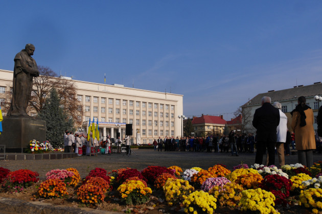 У рамках відзначення Дня української писемності та мови заступник міністра культури Юрій Рибачук, голова Закарпатської ОДА Геннадій Москаль, заступник голови обласної ради Петро Грицик, заступник Ужгородського міського голови Олександр Білак, голова Національної спілки письменників України Михайло Сидоржевський, голова обласної організації НСПУ Василь Густі, творчі діячі взяли участь у покладанні квітів до пам’ятника Тарасу Шевченку на площі Народній в Ужгороді. Там лунали пісня «Ой у лузі червона калина», твір Тараса Шевченка «Бандуристе, орле сизий» і «Молитва за Україну» у виконанні заслуженого академічного Закарпатського народного хору. Також опівдні на площі Театральній почався поетичний марафон – учні та вчителі шкіл міста читали вірші.