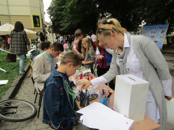 Чимало було охочих сфотографуватися з надписом «Я люблю Ужгород» поруч із чудовими дитячими малюнками нашого міста.