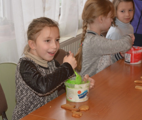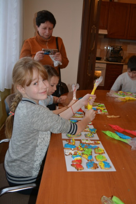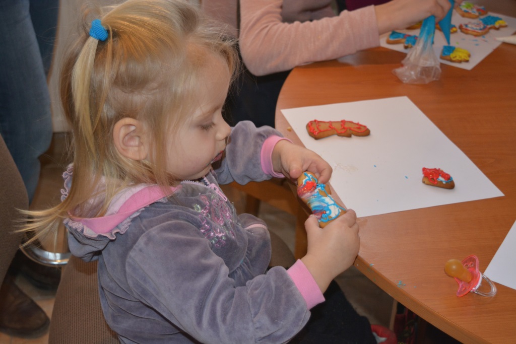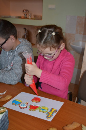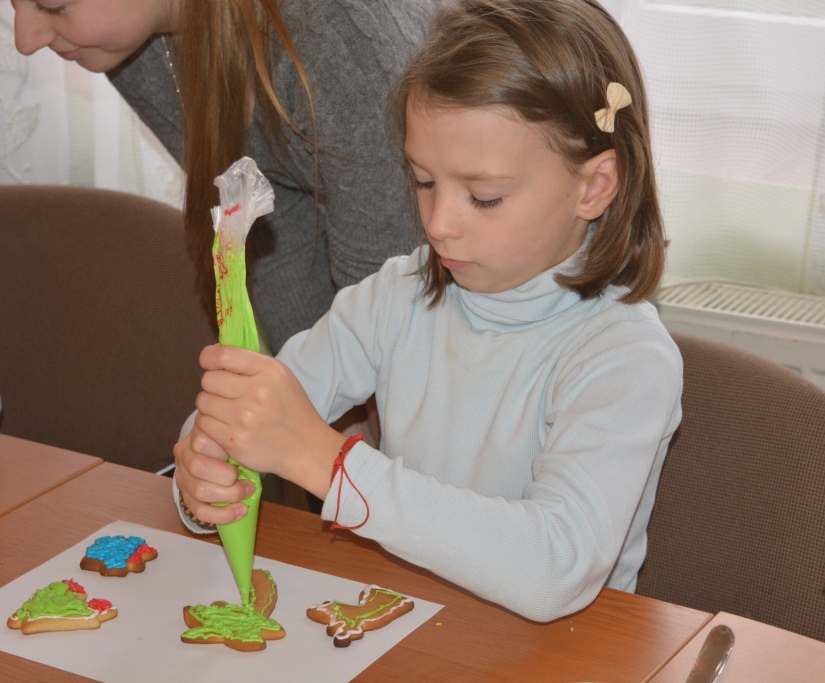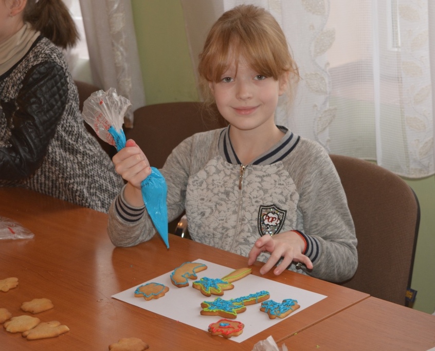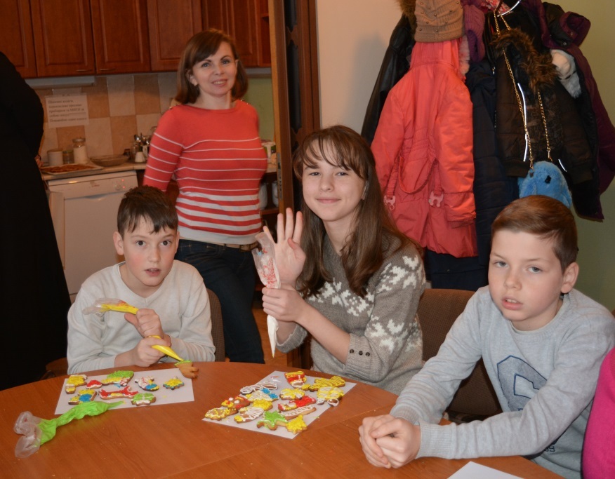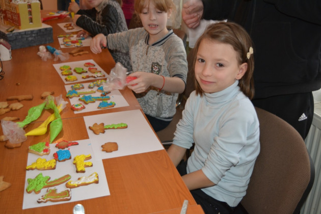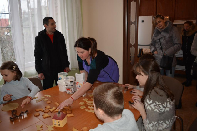 Дітки робили пряники під керівництвом пані Оксани Глинянської. Після майстер-класу мали змогу поласувати солодощами та отримали різдвяні подарунки від своїх однолітків із Німеччини.