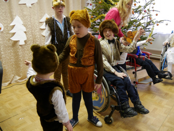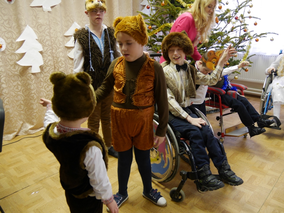 Сьогодні до вихованців медико-соціального реабілітаційного центру «Дорога життя» в Ужгороді завітали веселі казкові персонажі, зокрема й песики, та найочікуваніші – Дід Мороз і Снігуронька.
