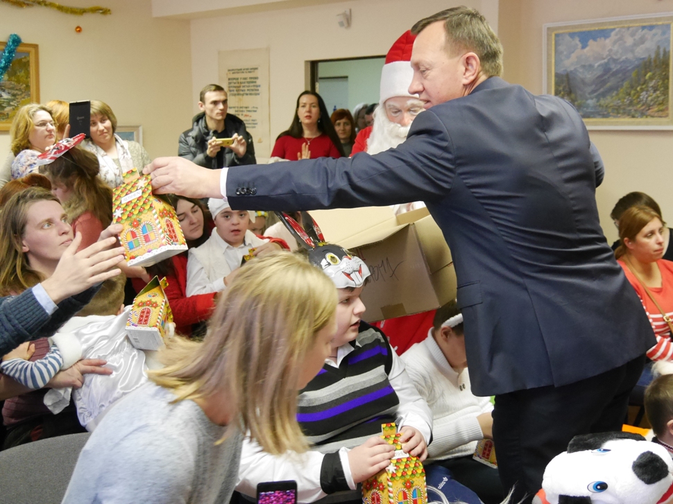 Відтак міський голова та інші гості допомогли Діду Морозу та Снігуроньці роздати підопічним «Дороги життя» солодкі подарунки.