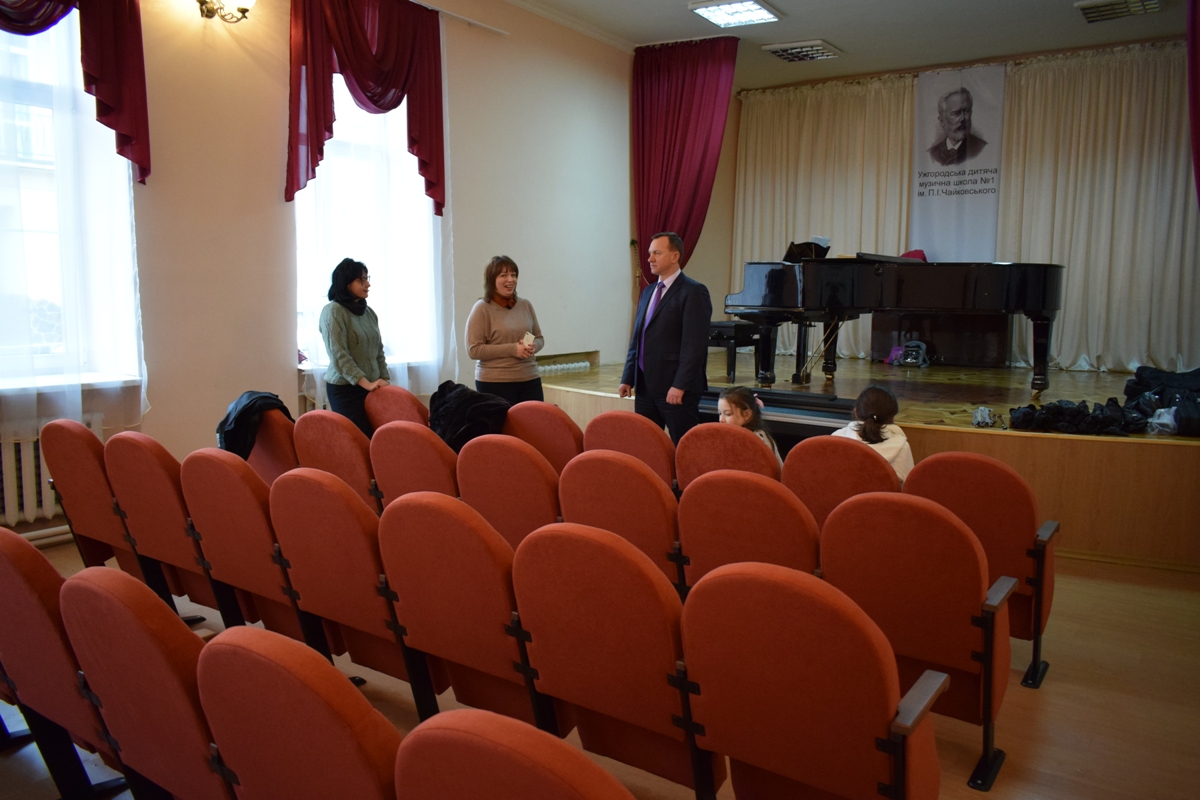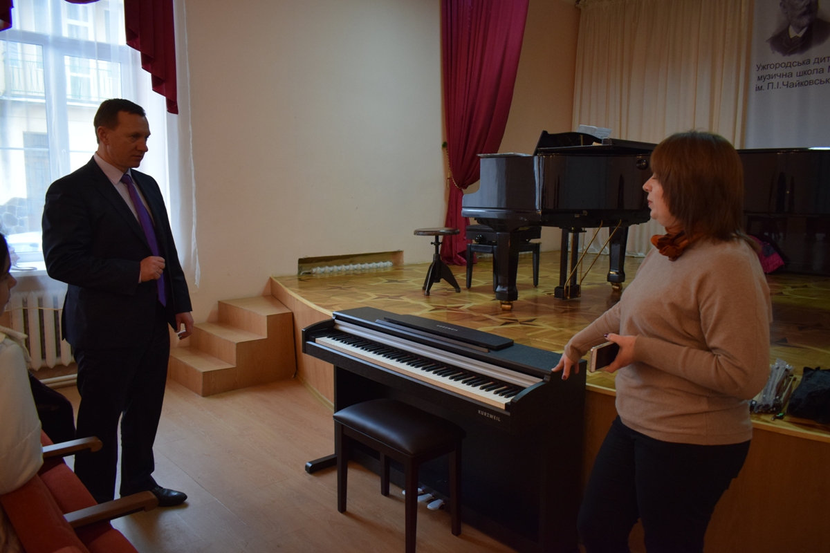 Ужгородський міський голова Богдан Андріїв сьогодні побував у двох навчальних мистецьких закладах: Ужгородській дитячій музичній школі №1 імені П.Чайковського та Ужгородській дитячій школі мистецтв. Наприкінці минулого року матеріально-технічна база цих шкіл суттєво покращилася. Зокрема, у музичну школу придбали три фортепіано, скрипки, гітари, та комплектуючі до них, звукопідсилюючу апаратуру для класу сольного співу, загалом більш ніж на 146 тис. грн. Крім того, купили нові крісла для концертного залу, бо старі використовувалися вже кілька десятків років. Також встановили пожежну сигналізацію, змонтували пристрої для захисту будівлі від удару блискавки, провели протипожежну обробку горища школи.