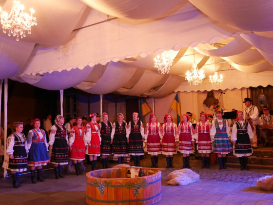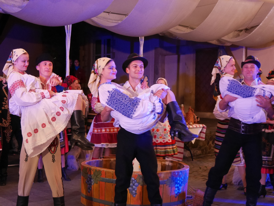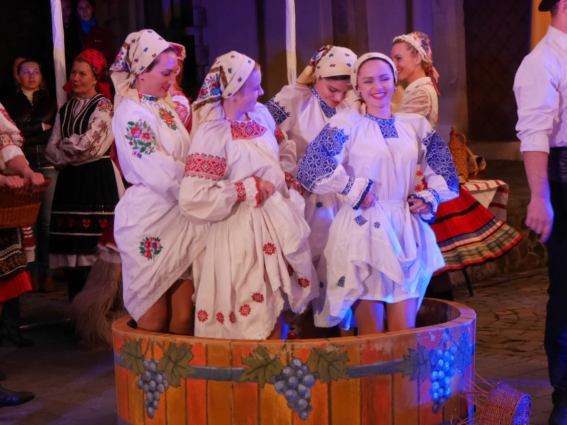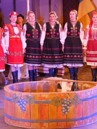 До дня міста музики колективу та артисти, які і співають, і танцюють, в етнопрограмі відобразили, як різні народи, котрі поруч віками живуть у нашому краї, збирають виноград, дівчата у великих бочках ногами чавлять його для вина, а згодом гуляють весілля з усіма його обрядами – вітаннями молодих, викраденням нареченої, першим танцем пари, шоровим танцем, “чіпчанням” хусткою, передаванням “шлаєра” в колі незаміжнім дівчатам та багатьма іншими.