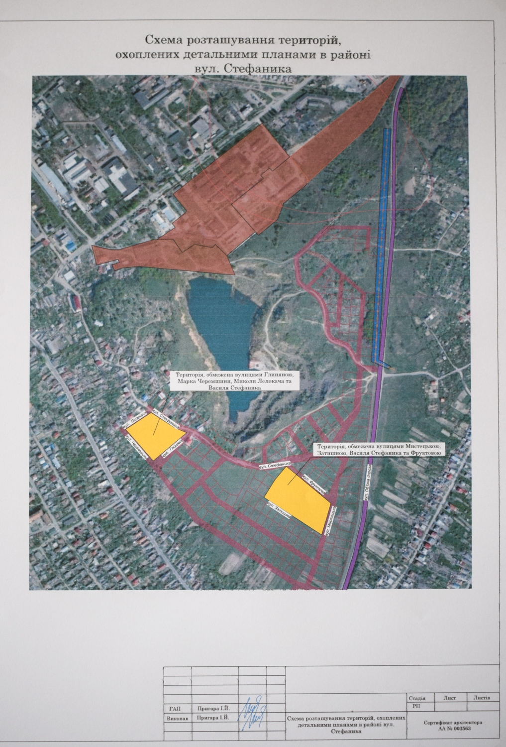 Інший детальний план, який винесли на громадські слухання – території, обмеженої вулицями Глиняною, Марка Черемшини, Миколи Лелекача та Василя Стефаника. За місяць, протягом якого можна було подавати пропозиції та зауваження, надійшло одне звернення щодо врахування у детальному плані території земельних ділянок для ведення сільського господарства, якими користуються вже 15 років, та нерозподілу під садибну забудову 4 ділянок. Під час слухань це звернення взяли до уваги, тож детальний план схвалили з наступними техніко-економічними показниками: