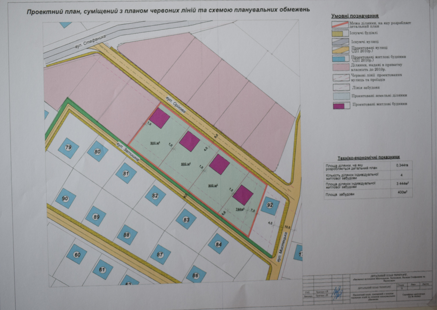 Отож детальний план проекту території, обмеженої вулицями Мистецькою, Затишною, Василя Стефаника та Фруктовою, було запропоновано прийняти з наступними показниками:
