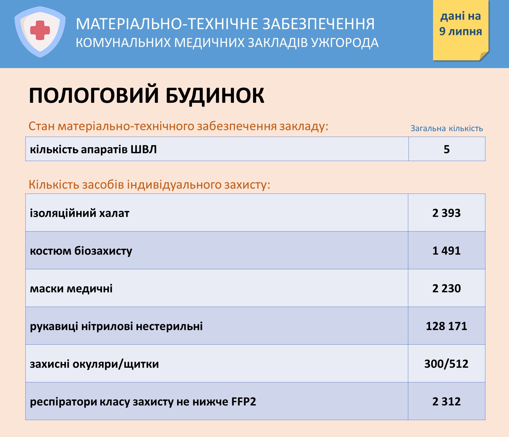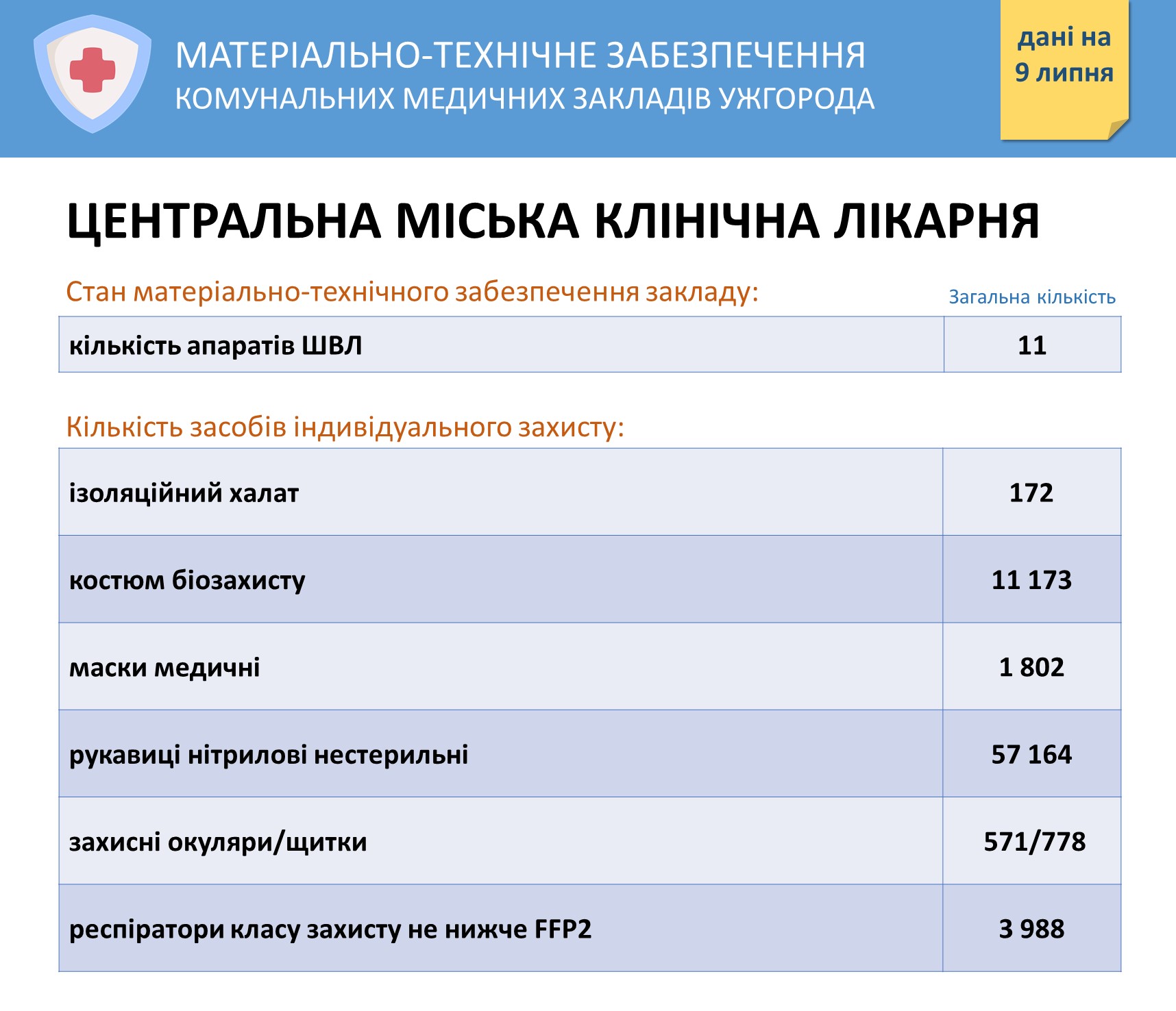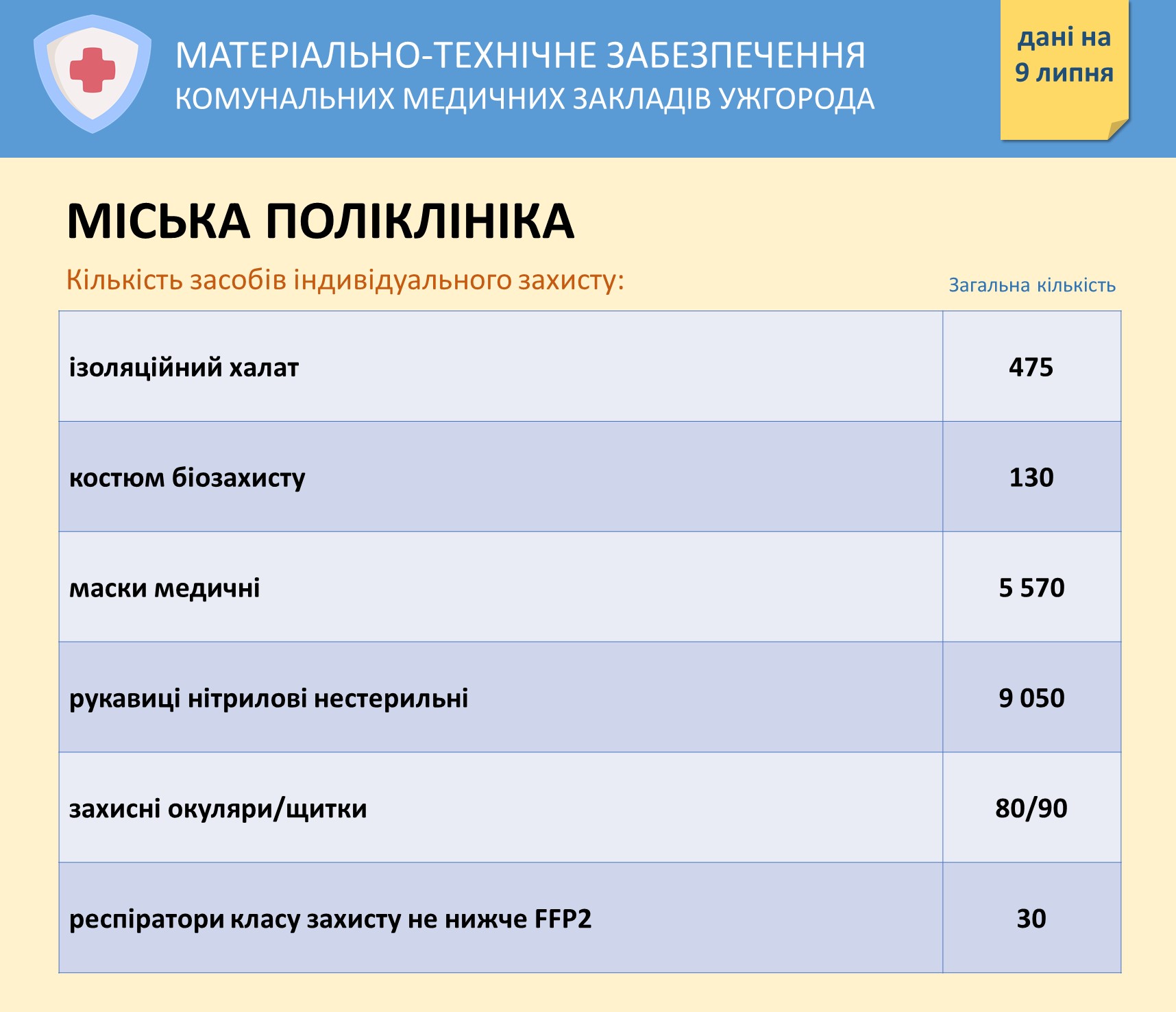 Інформація про забезпечення засобами захисту комунальних медзакладів Ужгорода на 9 липня Опубліковано: Липень 09, 2020