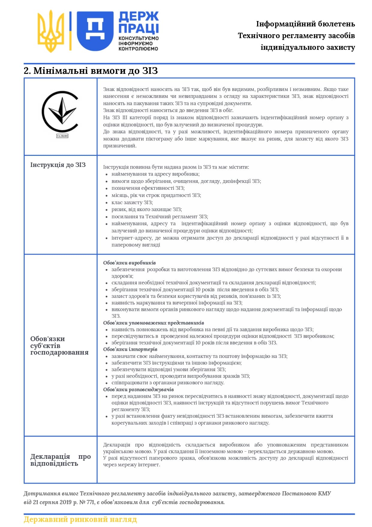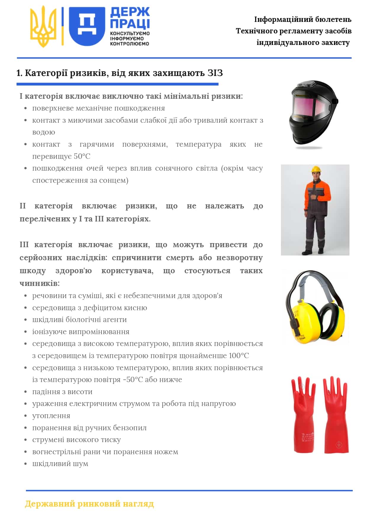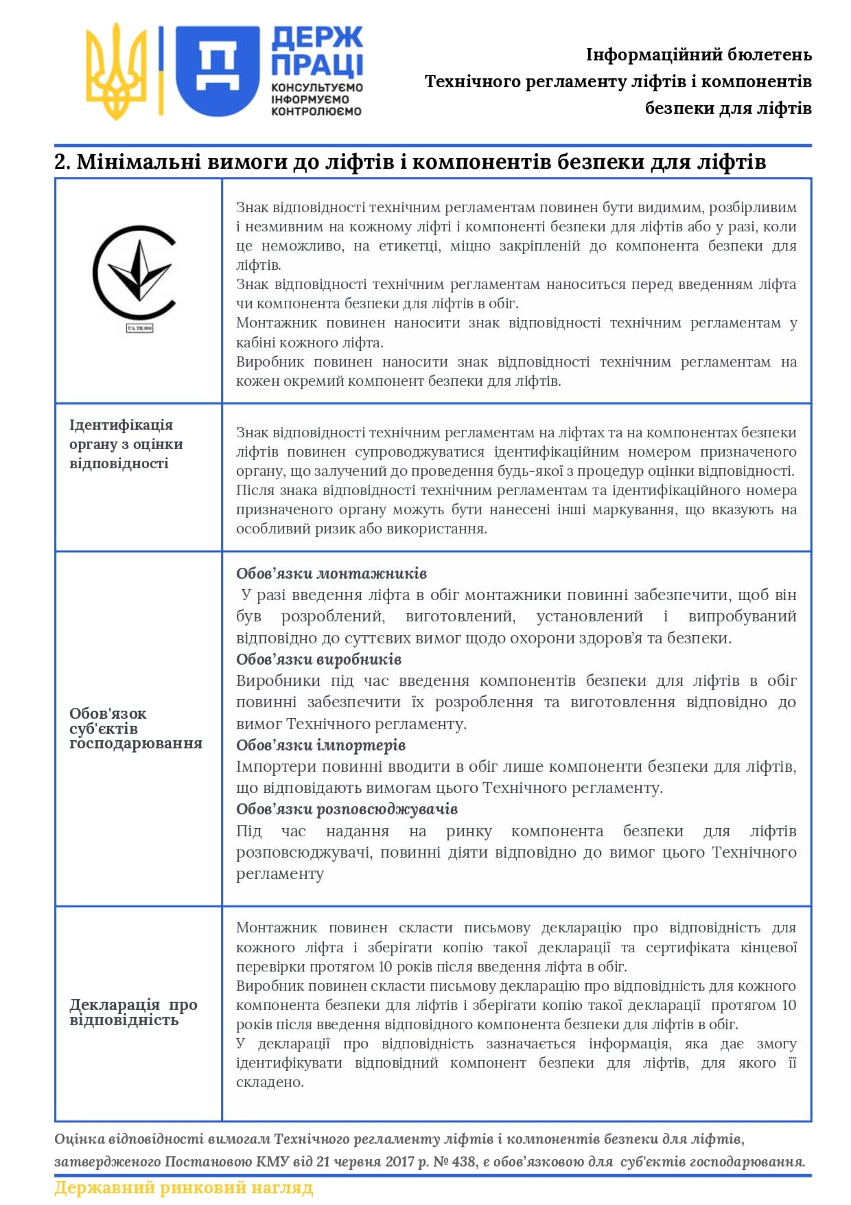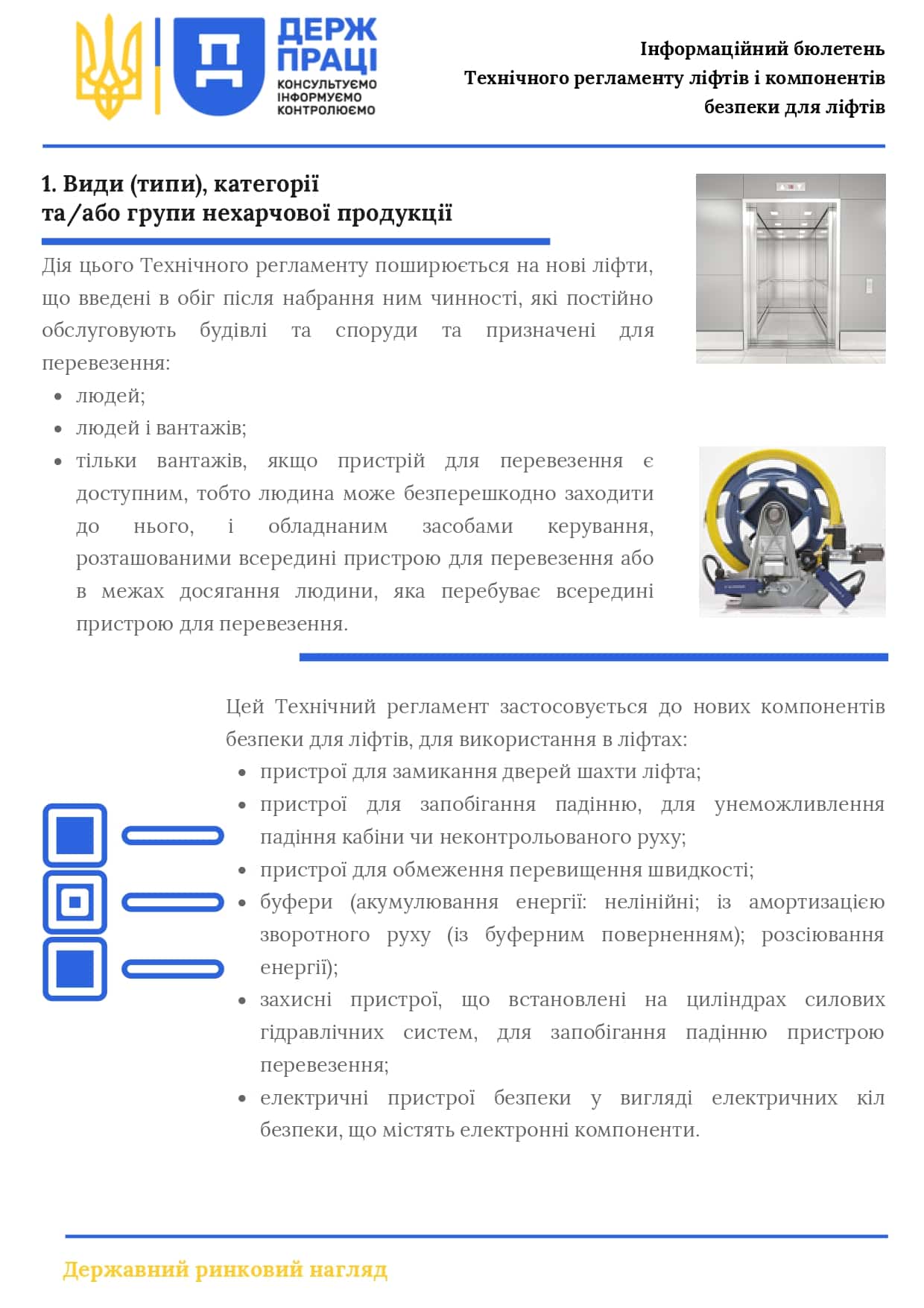 Інформаційні матеріали щодо продукції, яка підпадає під дію Технічного регламенту засобів індивідуального захисту та Технічного регламенту ліфтів та компонентів безпеки для ліфтів