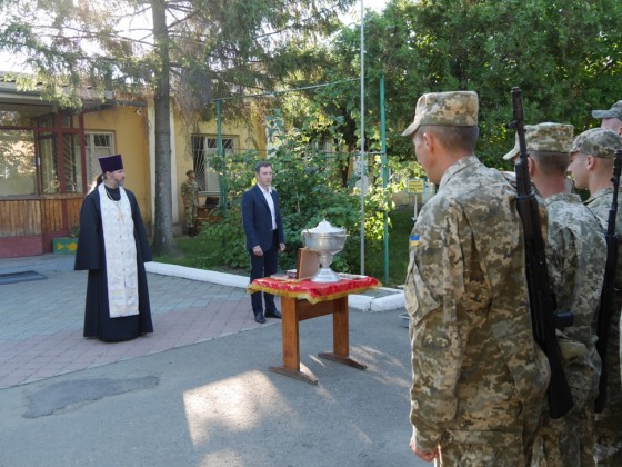 Священик благословив бійців на захист Вітчизни, кожному із солдатів також вручили освячені обереги.
