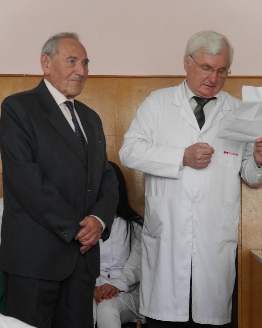 Від керівництва області директор департаменту охорони здоров’я Закарпатської облдержадміністрації Володимир Маркович передав імениннику найвищу крайову відзнаку – «За розвиток Закарпаття». Хірург, доктор медичних наук, професор, лауреат Державної премії України в галузі науки і техніки, заслужений лікар України Василь Русин нагадав, що з 85-річчям вітав колегу і тодішній головний хірург України, а днями найкращі побажання переказав нинішній головний хірург України – директор ДУ “Національний інститут хірургії і трансплантології ім. О.О.Шалімова НАМН України”, професор, д.м.н. Олександр Усенко який перебував на Закарпатті.