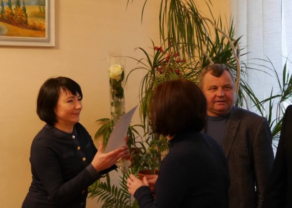За сумлінну працю, високий професіоналізм, виконання своїх професійних обов’язків та з нагоди 26-ої річниці утворення Пенсійного фонду України найкращим працівникам – Галині Качур, головному спеціалісту відділу обслуговування громадян, Любов Гимбі, головному спеціалісту відділу з призначення, перерахунку та виплати пенсій, Євгену Гавальцю, головному спеціалісту відділу з призначення, перерахунку та виплати пенсій, Марії Булеці, заступнику начальника відділу контрольно-перевірочної роботи – Олена Макара вручила грамоти Ужгородської міської ради.