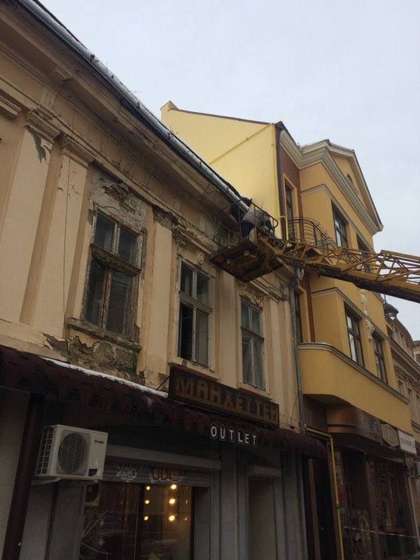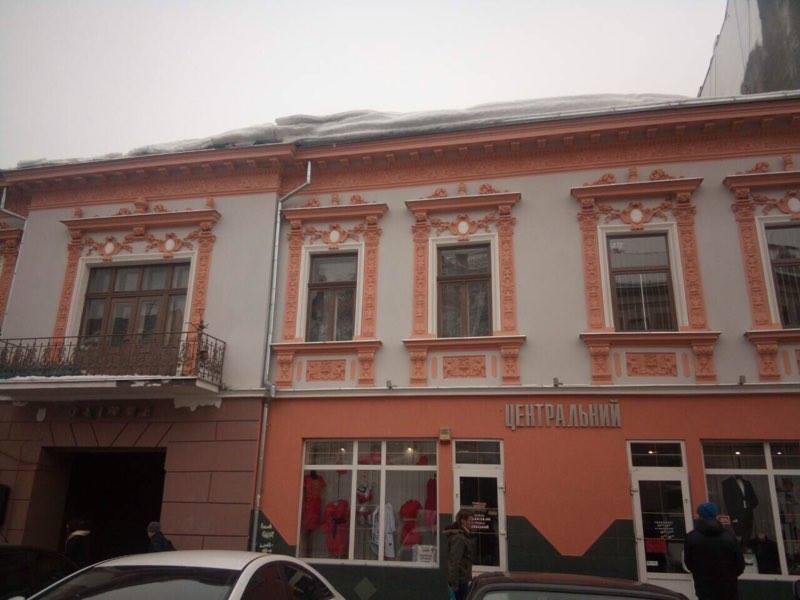 Крім того, з фасаду будинку на початку вулиці Волошина комунальники усували штукатурку, яка могла впасти. Ця будівля через незадовільний стан фасаду включена до плану реконструкції історичного центру на 2017 рік.