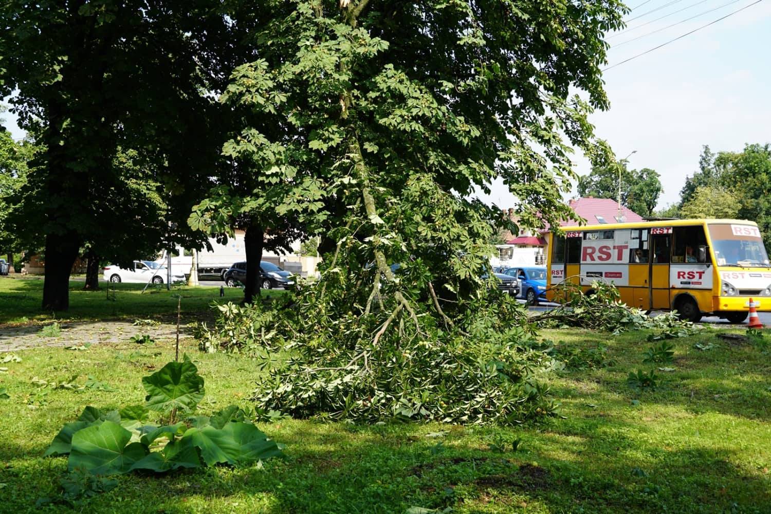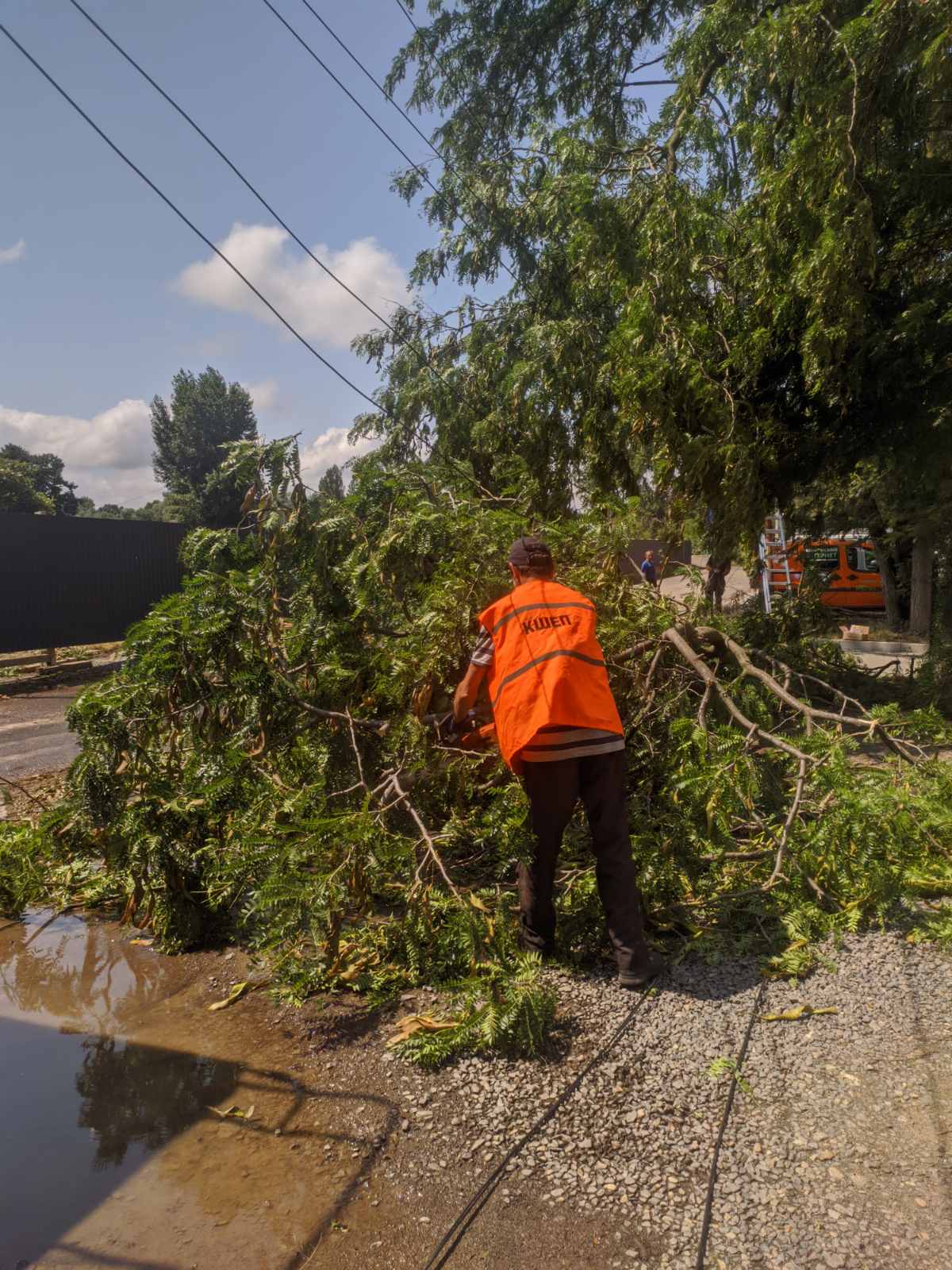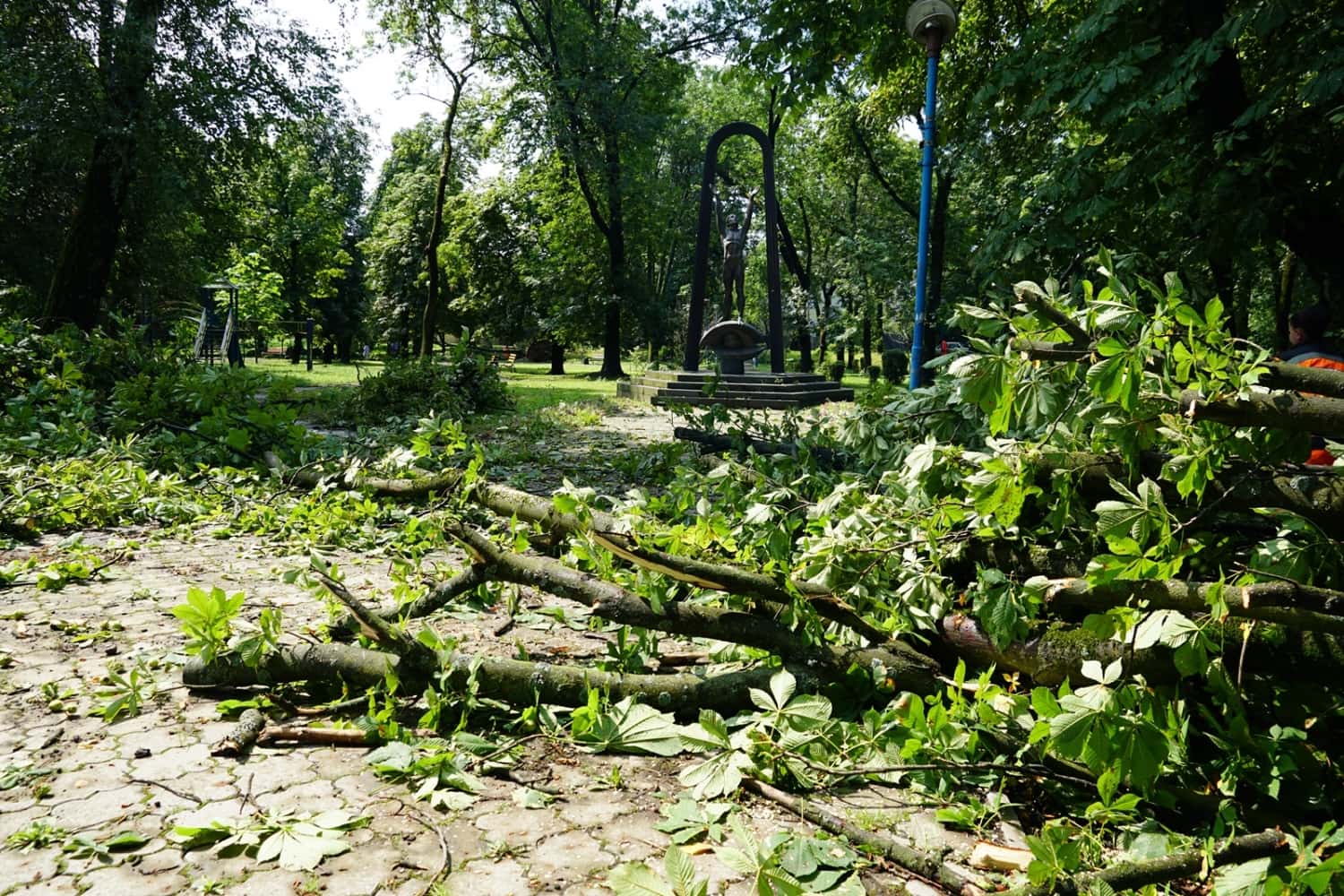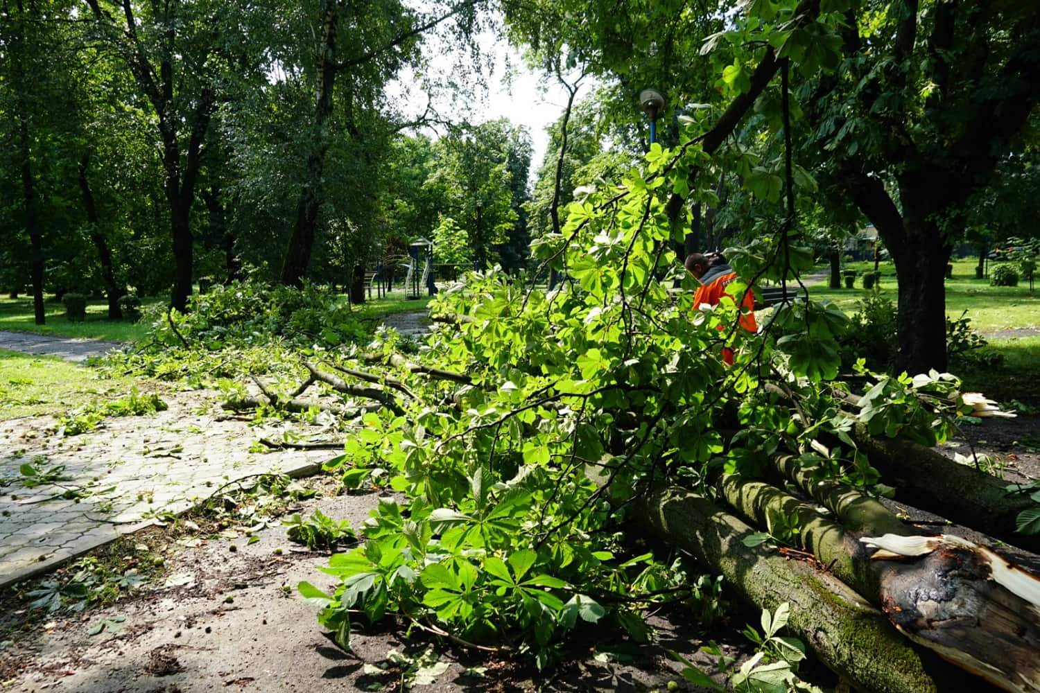 Учорашня негода супроводжувалася шквалистим вітром 29 м/с, подекуди градом. Для міста вітер 20 м/с уже критичний, повідомив директор департаменту міської інфраструктури Віталій Гільтайчук. За його словами, за попередніми даними внаслідок буревію на території міста впали близько 100 дерев. Також пошкоджені 5 покрівель на будівлях, сильний вітер повалив і значну частину рекламних конструкцій, є й пошкоджені внаслідок падіння дерев автівки. Були підтоплені вулиці, двори, підвали у низці багатоповерхівок.