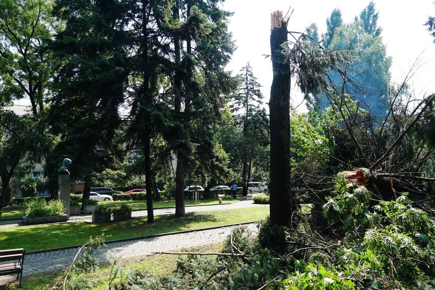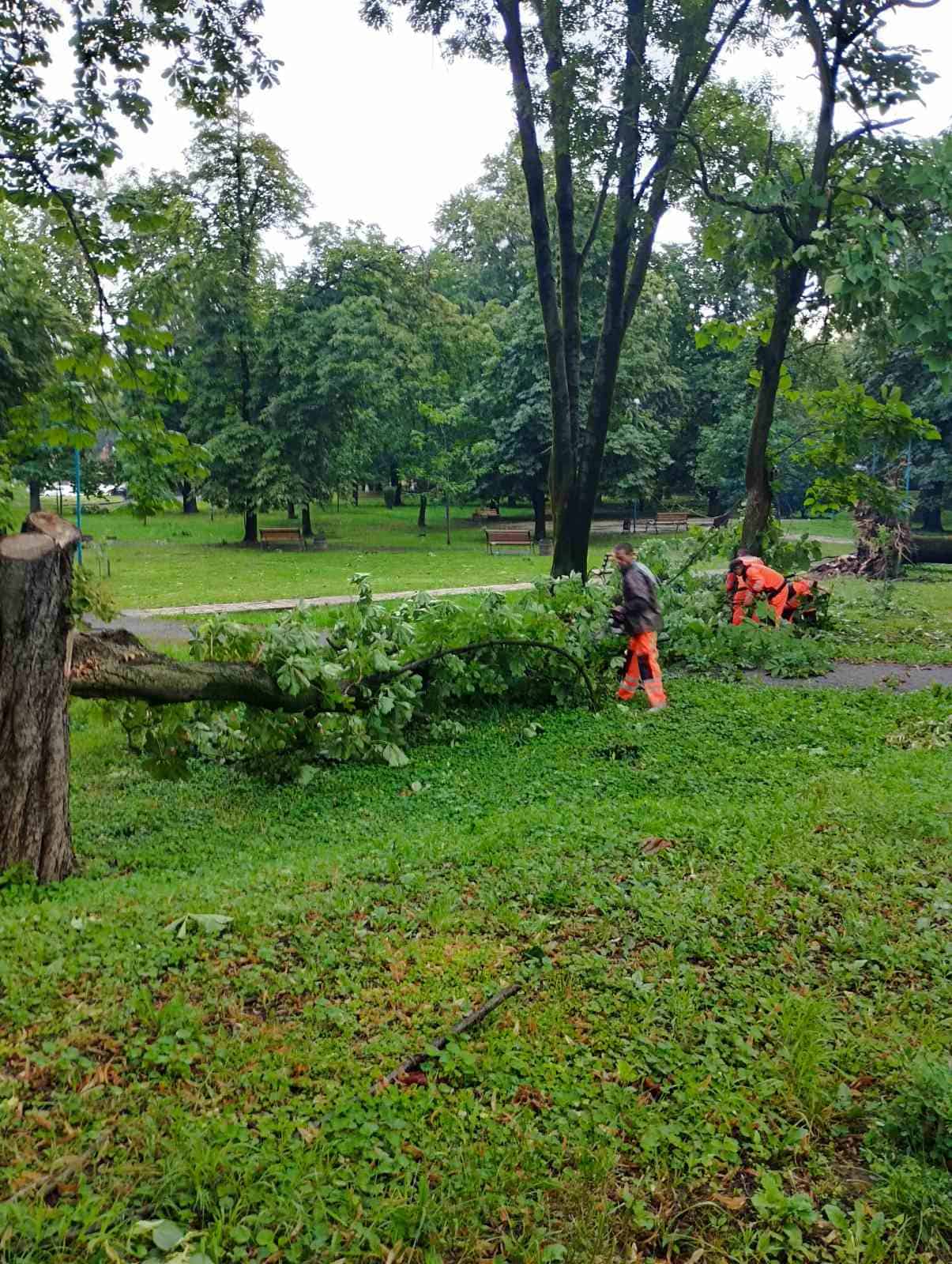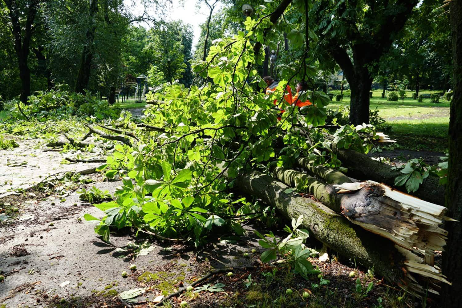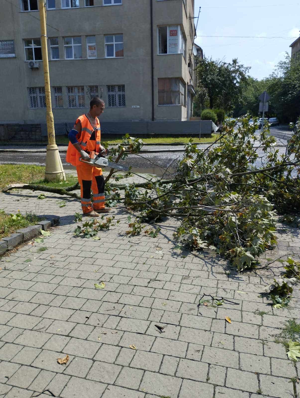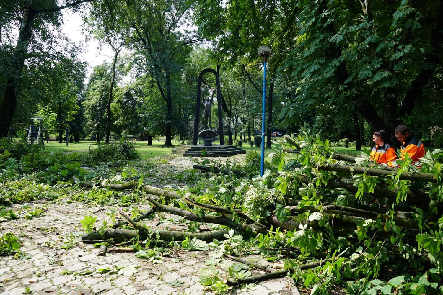 Учорашня негода супроводжувалася шквалистим вітром 29 м/с, подекуди градом. Для міста вітер 20 м/с уже критичний, повідомив директор департаменту міської інфраструктури Віталій Гільтайчук. За його словами, за попередніми даними внаслідок буревію на території міста впали близько 100 дерев. Також пошкоджені 5 покрівель на будівлях, сильний вітер повалив і значну частину рекламних конструкцій, є й пошкоджені внаслідок падіння дерев автівки. Були підтоплені вулиці, двори, підвали у низці багатоповерхівок.