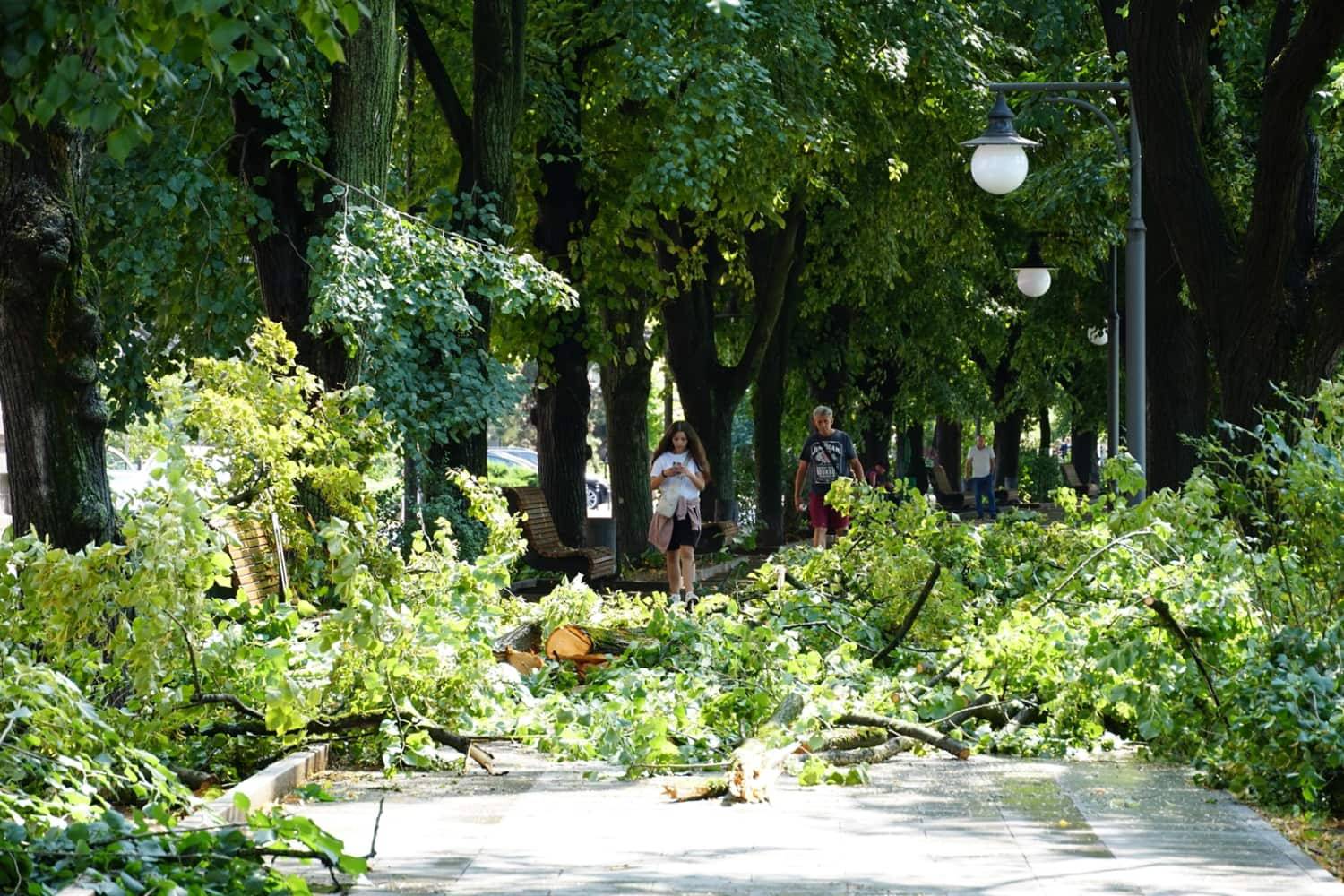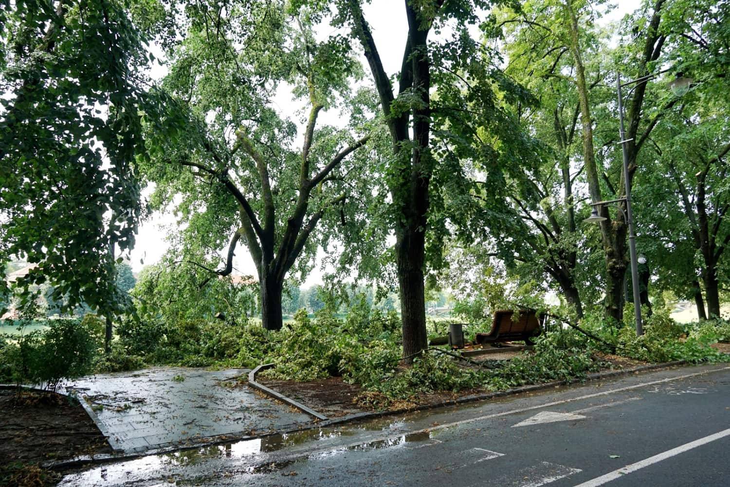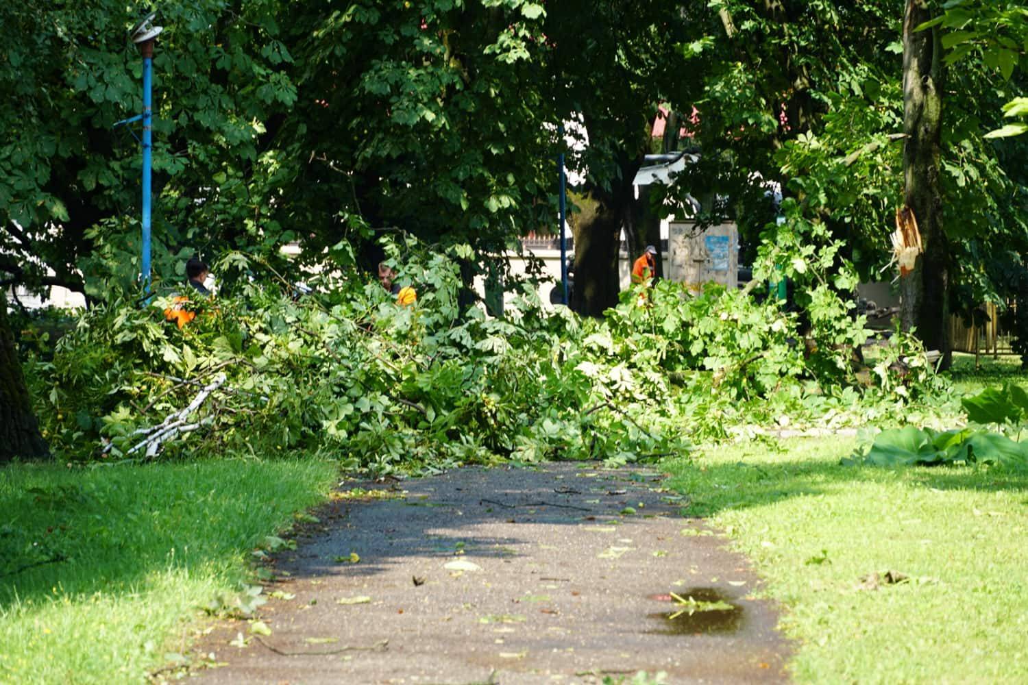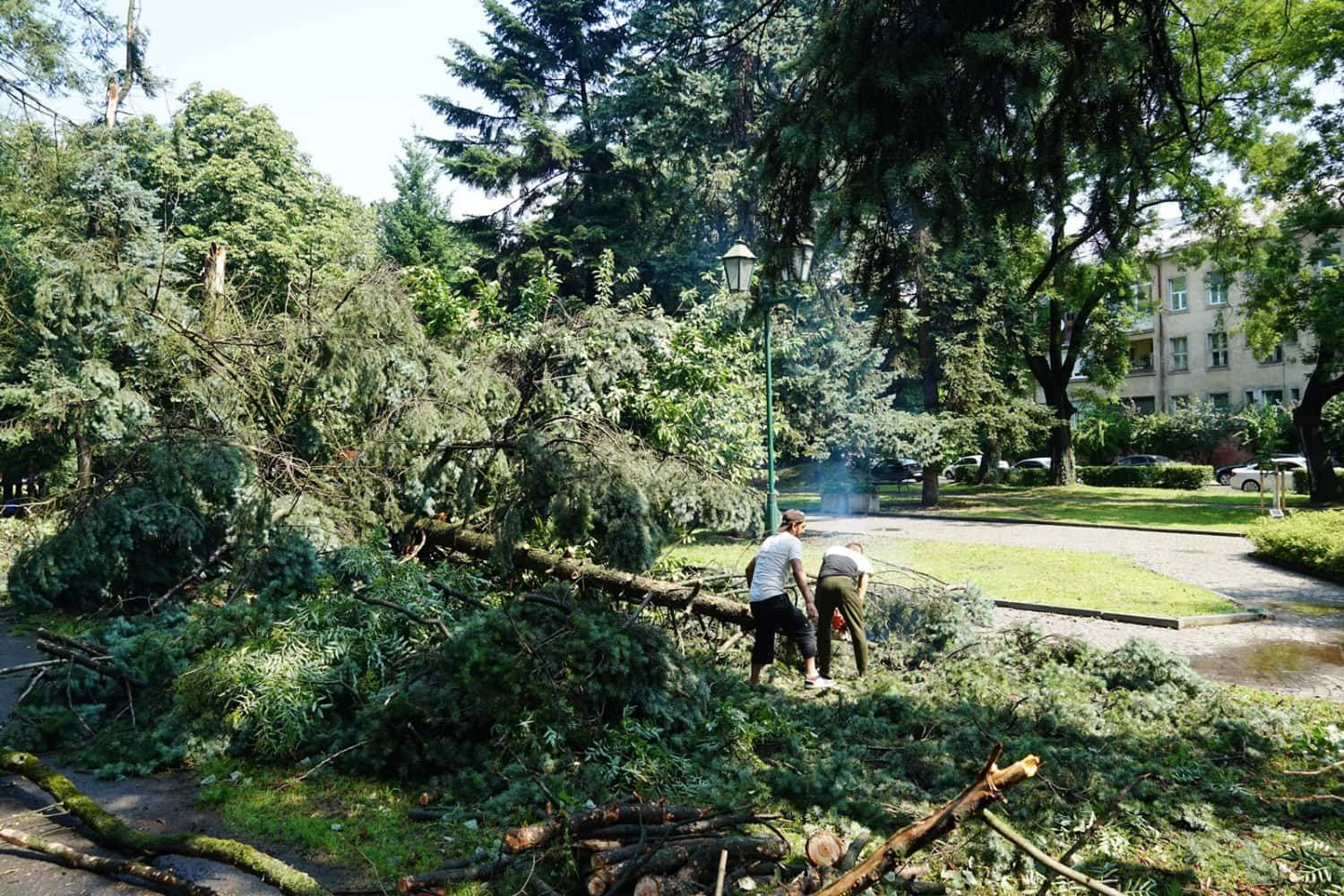 Учорашня негода супроводжувалася шквалистим вітром 29 м/с, подекуди градом. Для міста вітер 20 м/с уже критичний, повідомив директор департаменту міської інфраструктури Віталій Гільтайчук. За його словами, за попередніми даними внаслідок буревію на території міста впали близько 100 дерев. Також пошкоджені 5 покрівель на будівлях, сильний вітер повалив і значну частину рекламних конструкцій, є й пошкоджені внаслідок падіння дерев автівки. Були підтоплені вулиці, двори, підвали у низці багатоповерхівок.