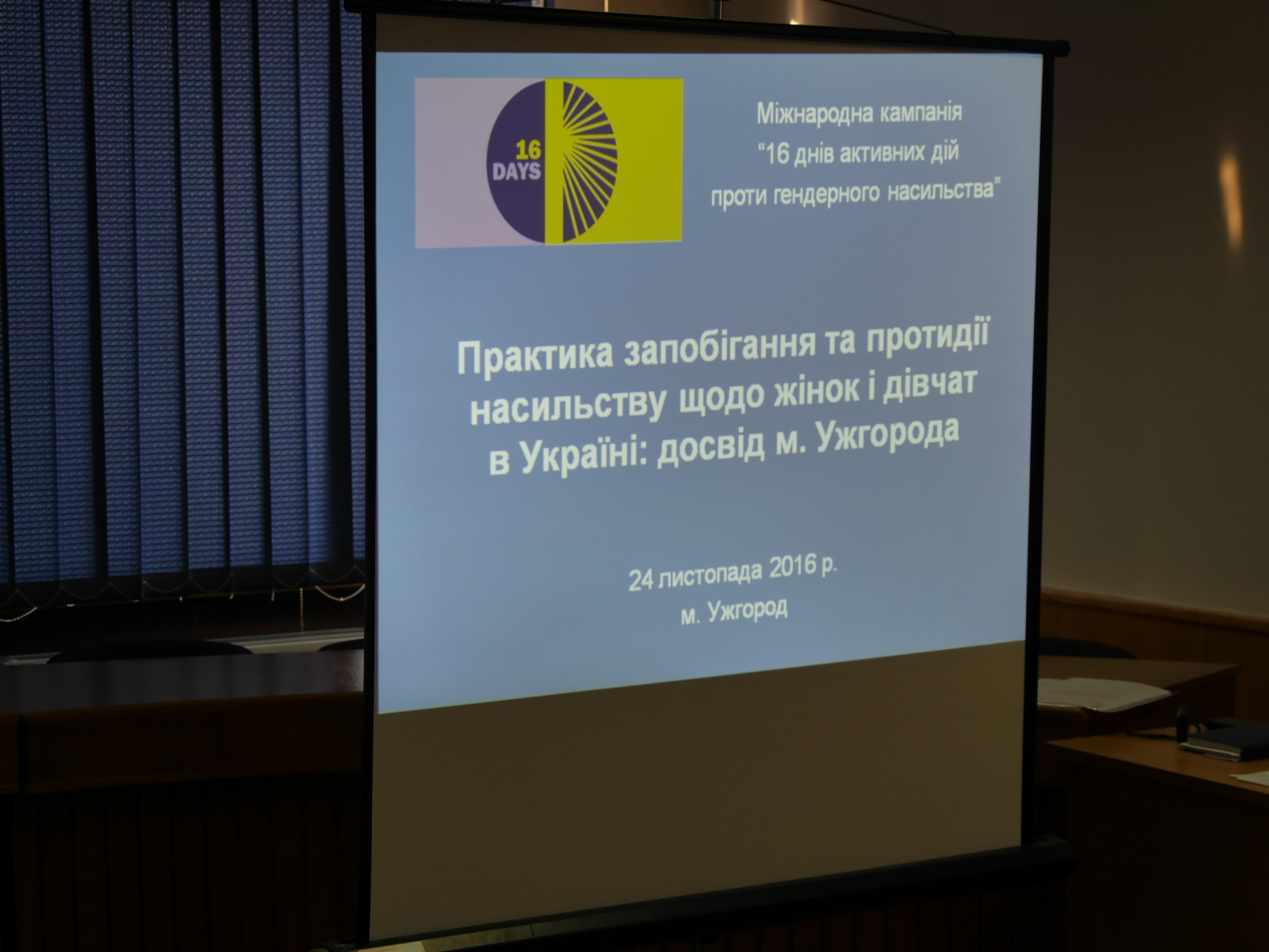 24 листопада в малому залі Ужгородської міської ради відбувся круглий стіл у межах Міжнародної кампанії «16 днів проти ґендерного насильства» – «Практики запобігання та протидії насильству щодо жінок і дівчат в Україні: досвід м.Ужгорода».