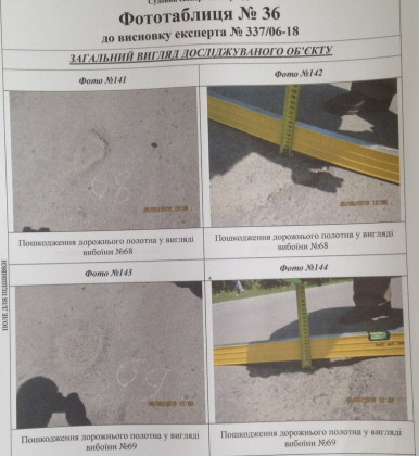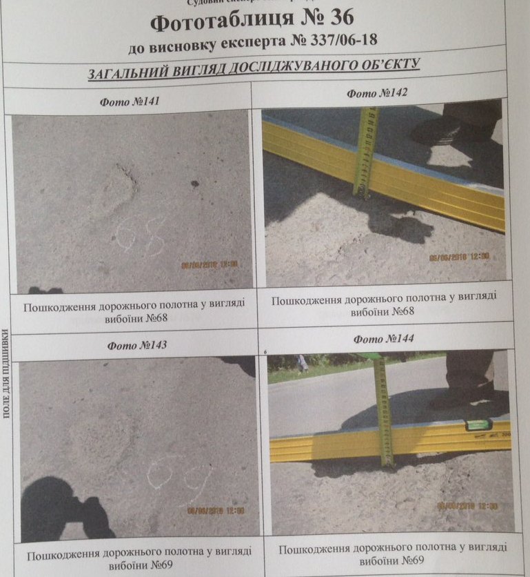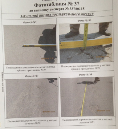 Під час проведення оглядів, де був присутній і представник фірми-підрядника, провели заміри влаштованого покриття та розташування на ньому виявлених дефектів. Усе документально зафіксовано.
