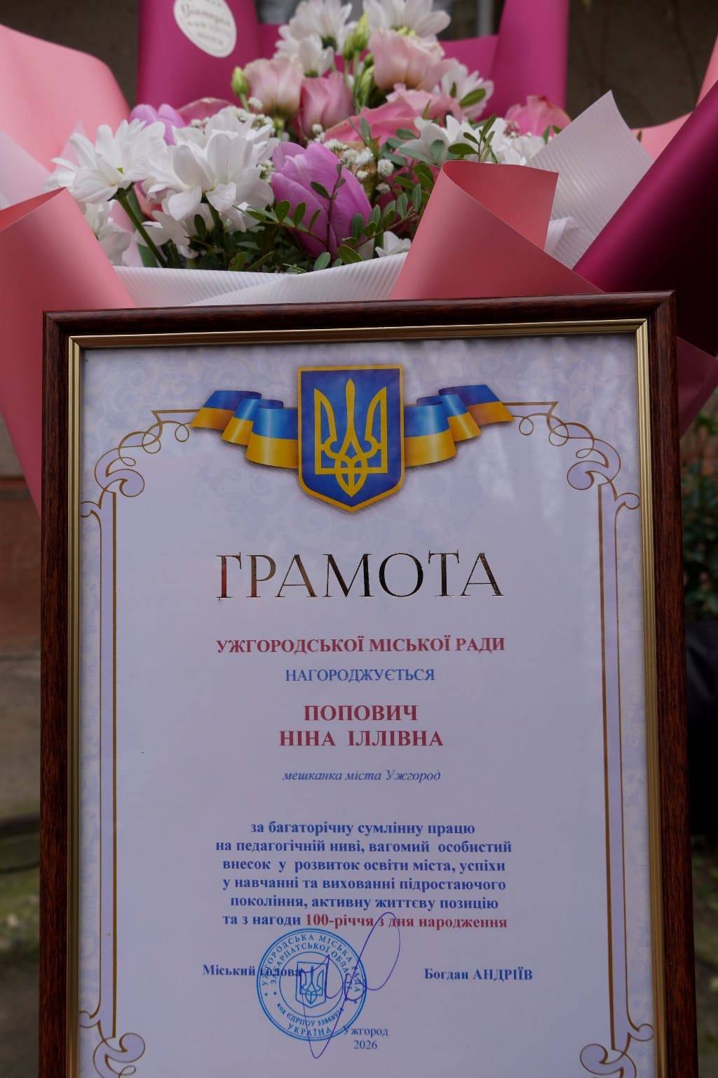 Міський голова Богдан Андріїв привітав із 100-літнім ювілеєм ужгородку Ніну Попович