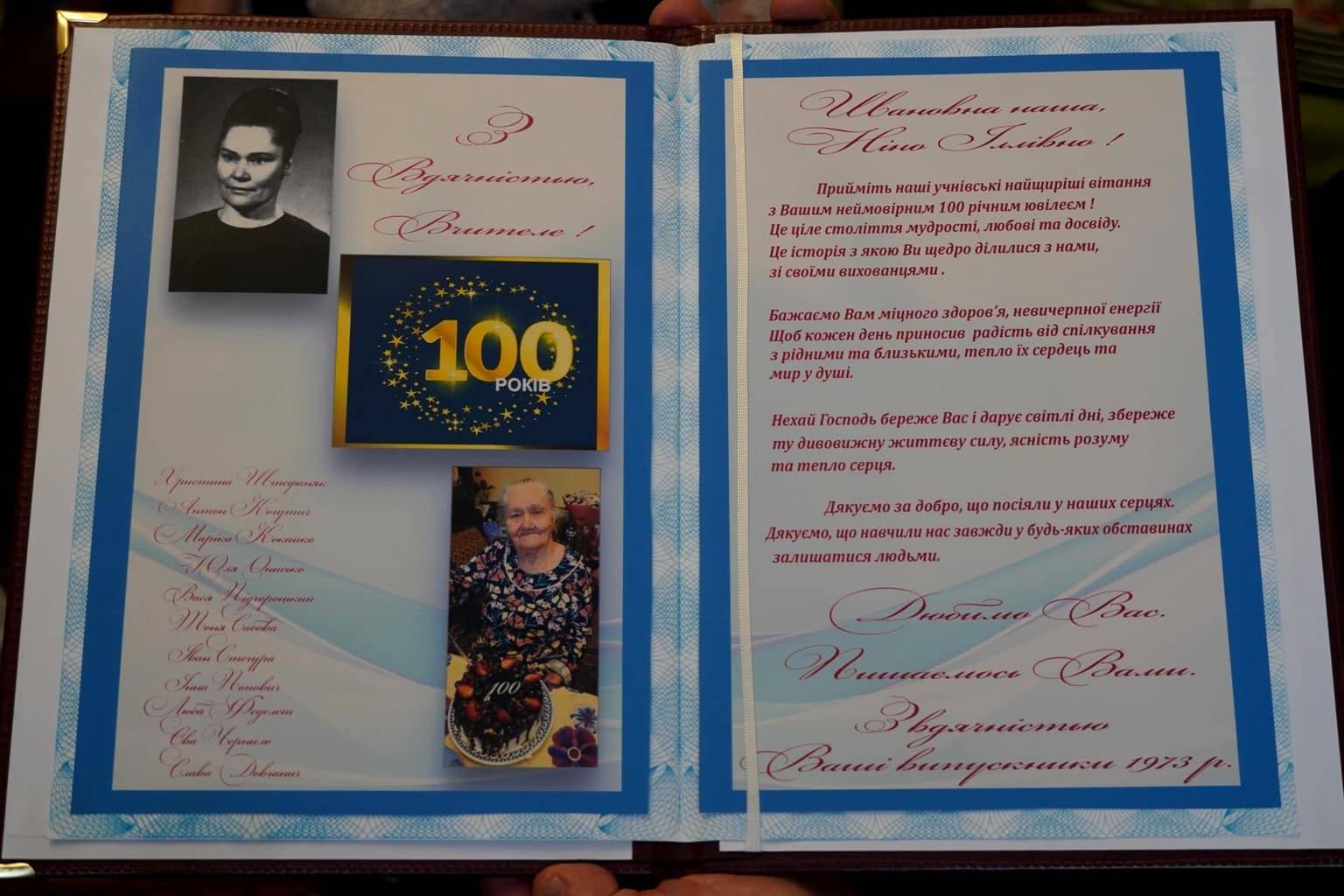 100-літній ювілей відзначила напередодні ужгородка Ніна Попович. Із нагоди такої поважної дати її привітав і міський голова Богдан Андріїв, побажавши міцного здоров’я, душевного спокою, родинного тепла та турботи близьких.