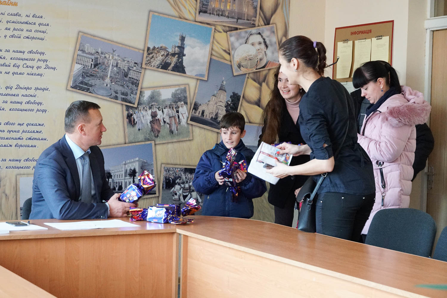 Також Богдан Євстафійович вітав усіх, хто сьогодні прийшов на прийом, із прийдешніми святами, а діткам, які були з батьками – вручив солодкі подарунки.