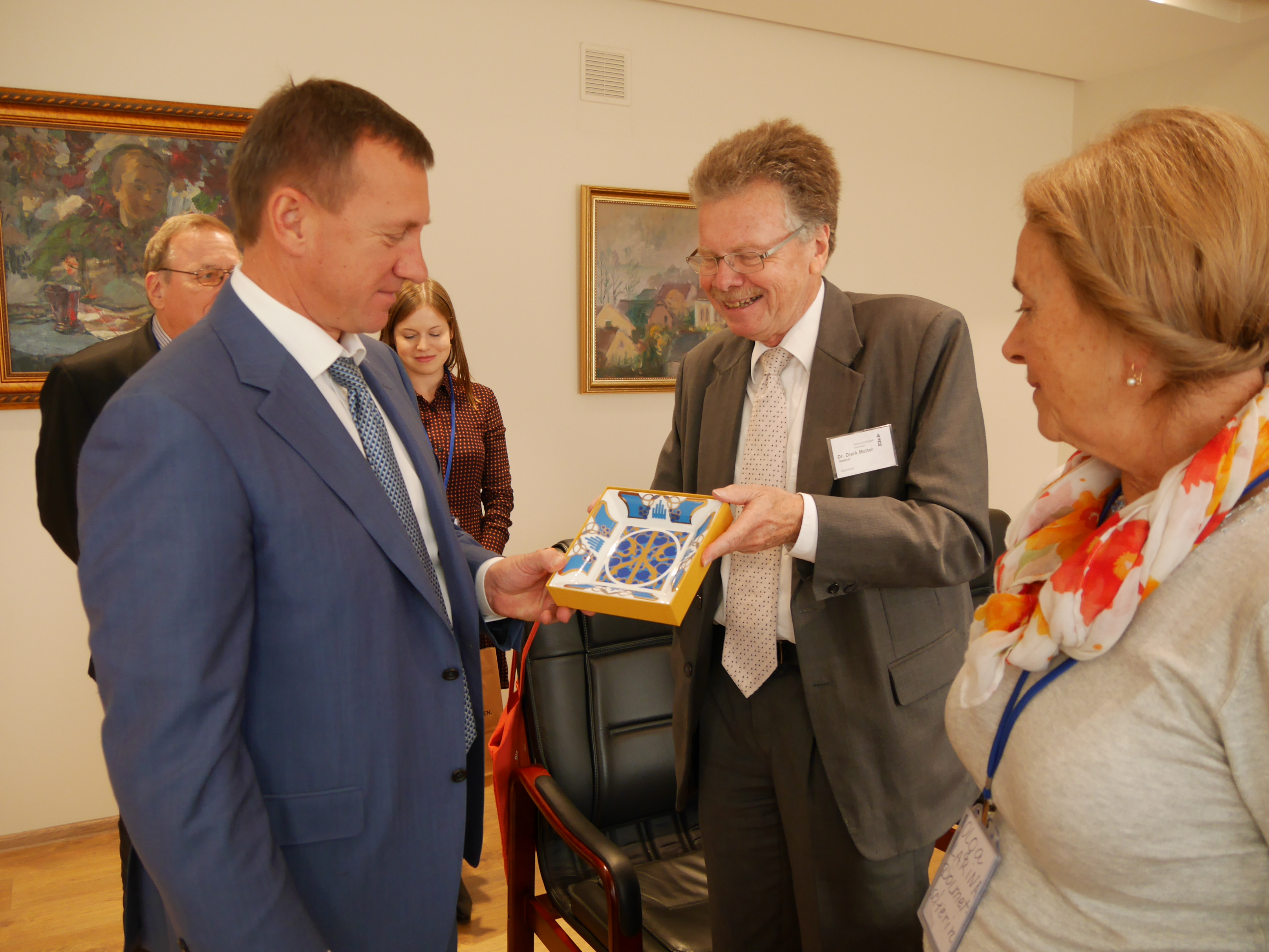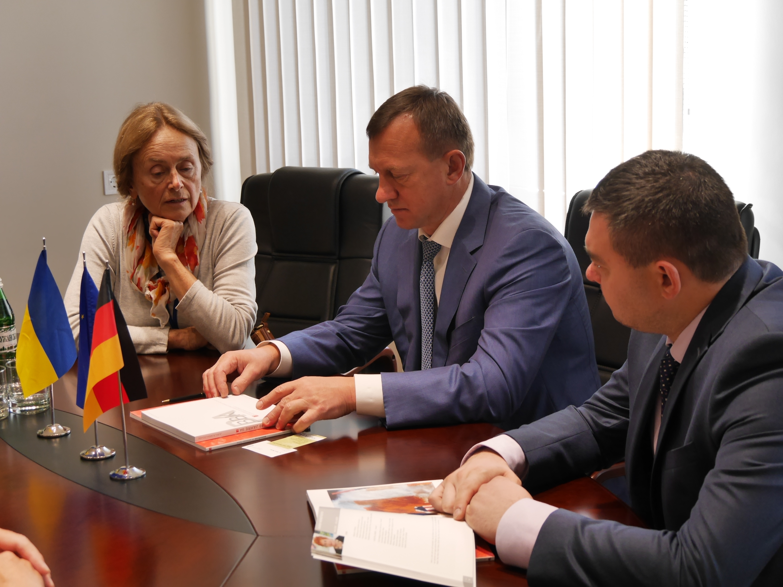 У рамках перебування в Ужгороді фахівців із міста-побратима Дармштадта напередодні відбулася зустріч міського голови Богдана Андріїва та його заступника Олександра Білака з представниками муніципалітету цього німецького міста – керівником німецької делегації доктором Дірком Молтером відповідальним працівником за співпрацю Ужгорода і Дармштадта міськради Дармштадта Аліною Зіл, та керівником організації «Німецько-українське коло друзів» доктором Ульріхом Віссманном.