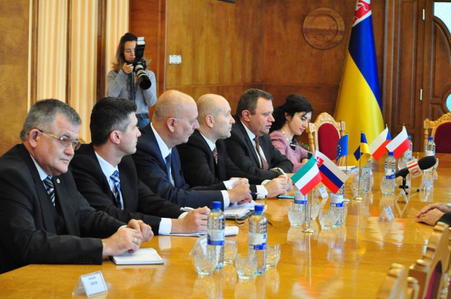 Зустріч із Надзвичайними і Повноважними Послами Угорщини в Україні Ерно Кешкенем, Словацької Республіки Юраєм Сівачеком, Чеської Республіки Радеком Матулою та членами делегацій відбулася в колонному залі Закарпатської обласної державної адміністрації.