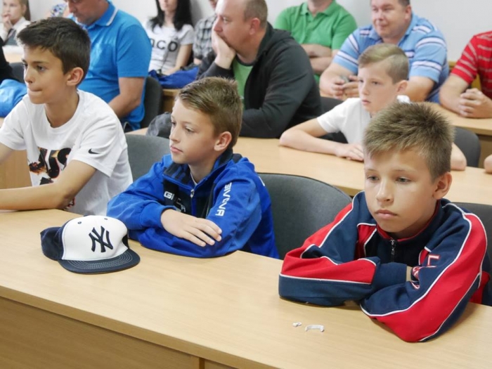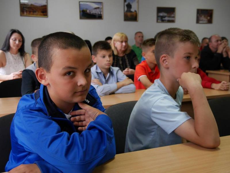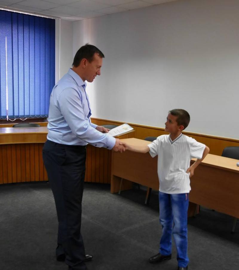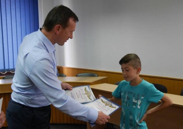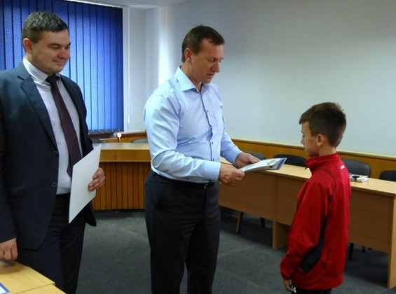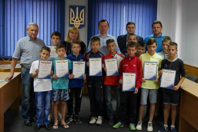 Ужгородський міський голова Богдан Андріїв нагородив сьогодні грамотами школярів – переможців всеукраїнського футбольного турніру “Шкіряний м’яч”, а також тренерів і керівника ЗОШ №19.Богдан Євстафійович привітав юних спортсменів з перемогою, відзначивши, що таким чином вони популяризують здоровий спосіб життя та безпосередньо футбол, а також відроджують славні футбольні традиції Закарпаття. Богдан Андріїв нагадав і тренерам, і присутнім батькам, що у місті є чудові умови для тренування на стадіоні “Автомобіліст” – там прекрасне поле, де є можливість тренуватися одночасно кільком дитячим командам.
