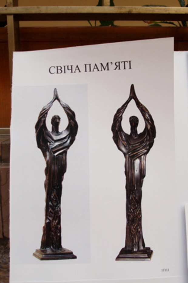 Нагадаємо, монумент-нагадування про одну з найтрагічніших сторінок історії України заплановано звести на площі Народній біля набережної Незалежності і будівлі медичного факультету УжНУ. Торік до річниці вшанування пам’яті жертв Голодомору на місці майбутнього пам’ятника встановили наріжний камінь, а в цьому році провели конкурс на визначення кращого майбутнього монументу. Роботи 7 авторів з Ужгорода, Мукачева, Хуста, Львова, Києва, подані на конкурс, усі охочі могли оцінити в атріумі будівлі Закарпатської ОДА та облради, за таємним голосуванням рішенням поважного журі перемогу здобула робота Гречаників «Свіча пам’яті». Висота майбутньої скульптурної композиції, яку заплановано виконати в бронзі, сягатиме приблизно 4-5 метрів.