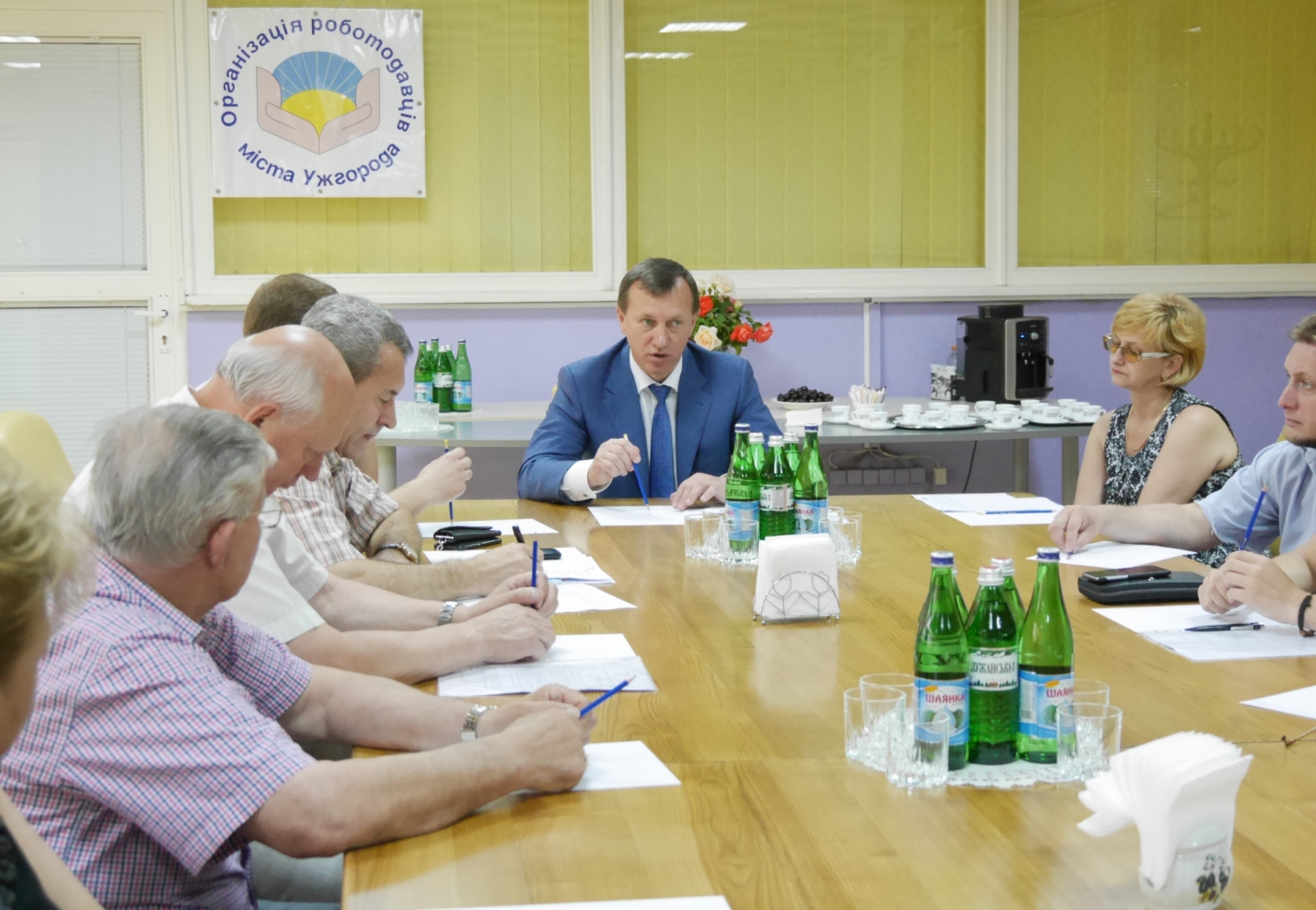 Ужгородський міський голова Богдан Андріїв зустрівся напередодні з членами міської організації роботодавців, яку очолює директор «Турбогазу» Михайло Качур. Зустріч провели на заводі «Електродвигун».