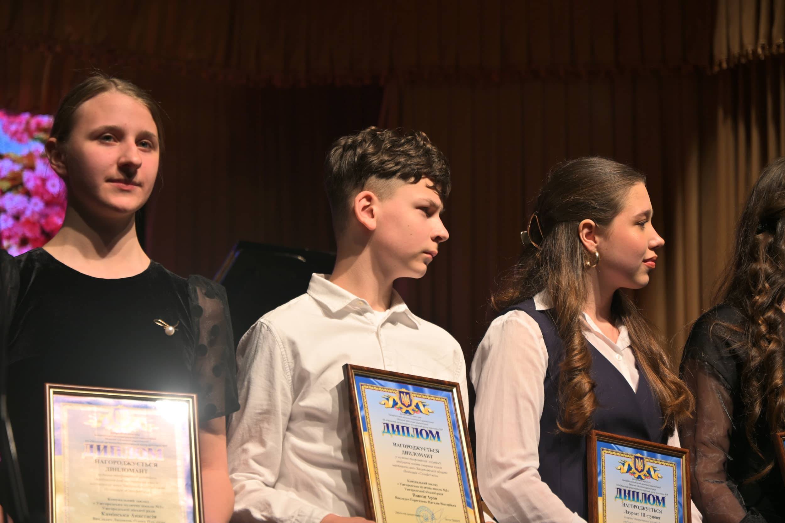 Під час концерту відбулося й урочисте вручення грамот переможцям обласної музично-теоретичної олімпіади серед учнів мистецьких шкіл Закарпаття, яка відбулася 18 березня в Ужгородському музичному фаховому коледжі імені Дезидерія Задора. Учні музичної школи №1 під творчим керівництвом викладачів відділу музично-теоретичних дисциплін традиційно продемонстрували високий рівень підготовки та здобули призові місця у номінаціях «Музична література» та «Сольфеджіо».