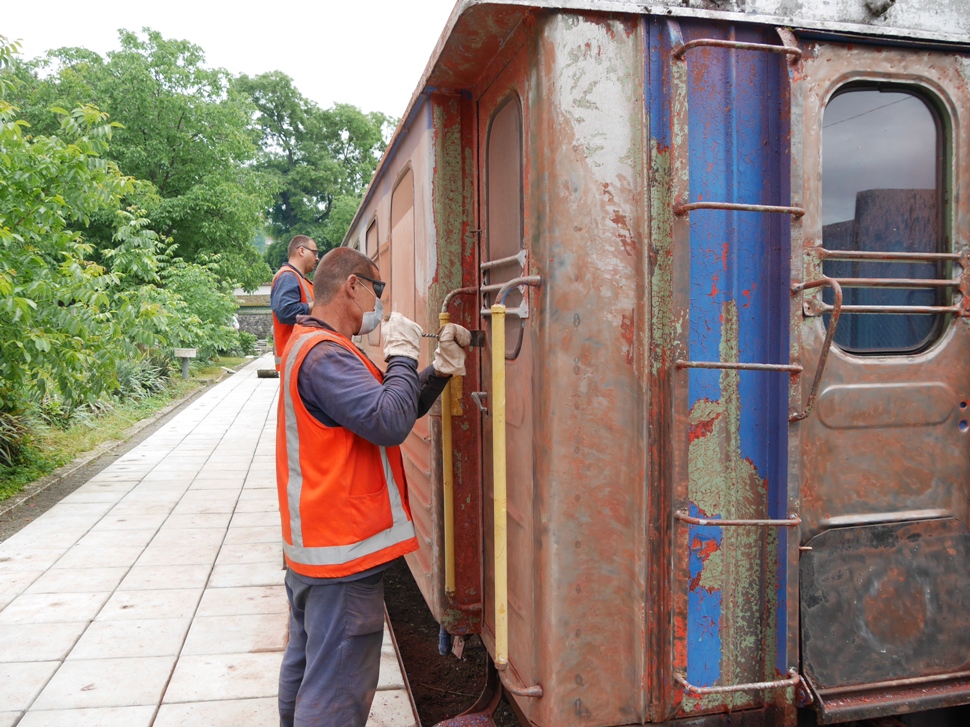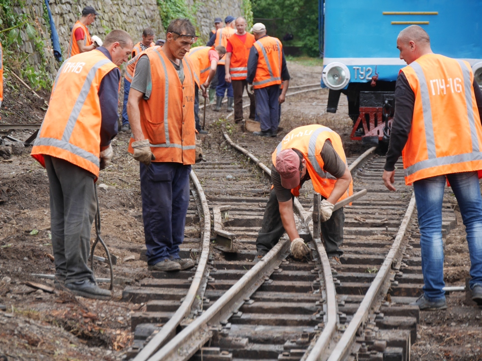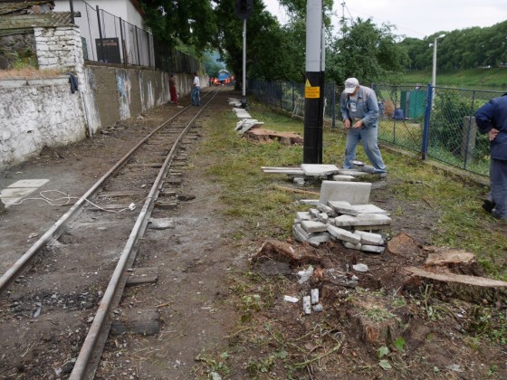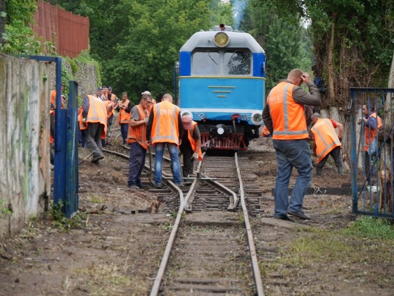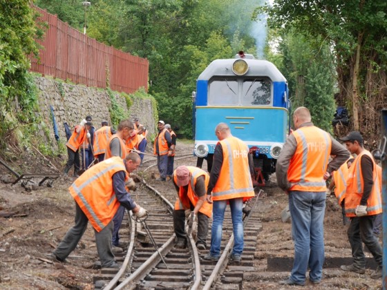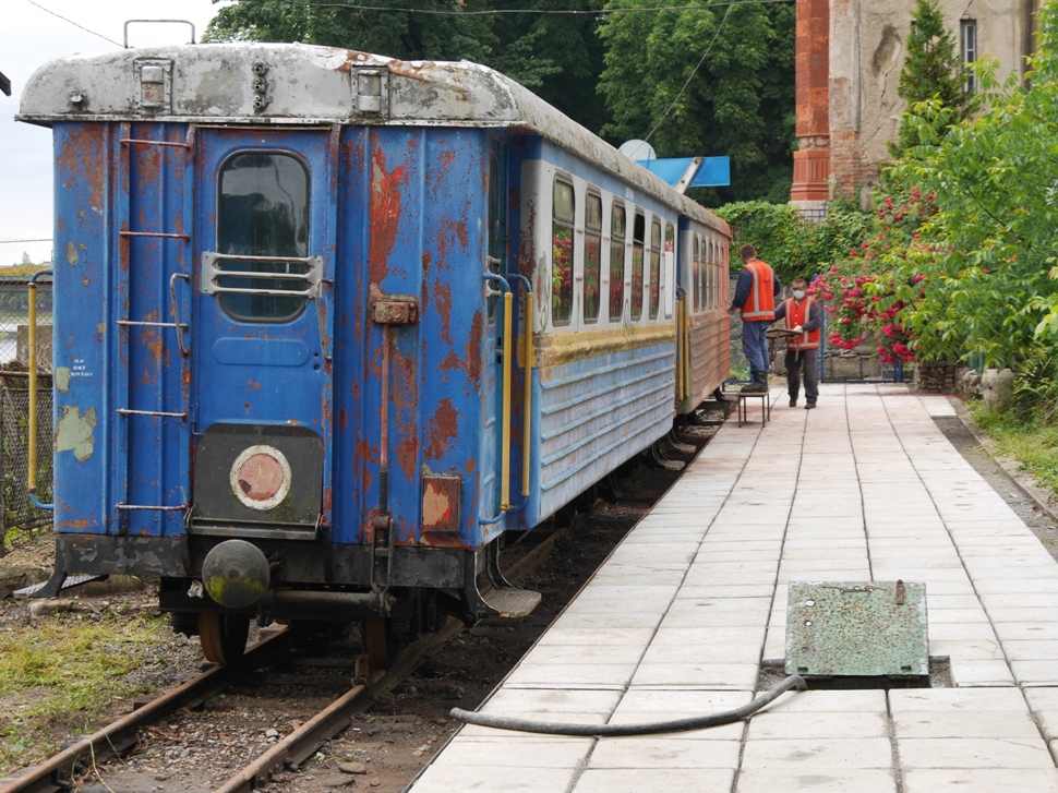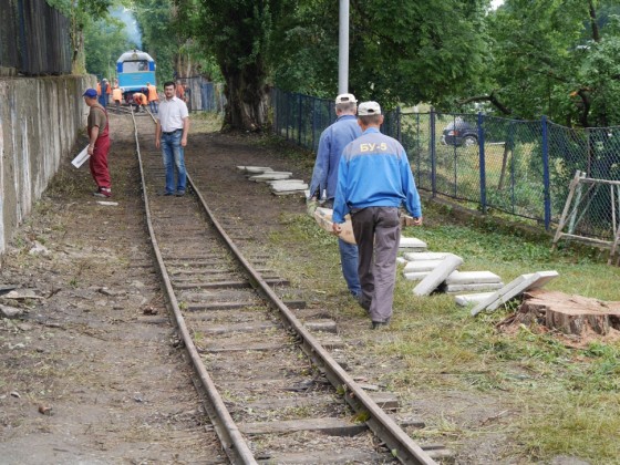 Днями сюди доставили працюючий локомотив із Боржавської вузькоколійки. Сьогодні на місці працюють залізничники – оновлюють колію, чистять і готують до фарбування вагони, видалили дерева, які розрослися за роки, поки дитячий потяг не курсував.