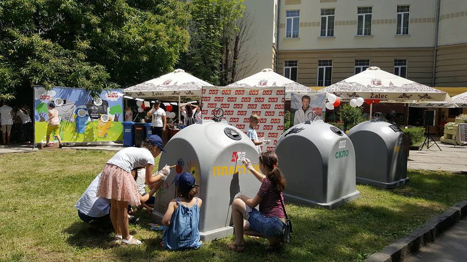 Разом з працівниками підприємства діти розмалювали баки для роздільного сміття, які поставлять на одному з контейнерних майданчиків міста.