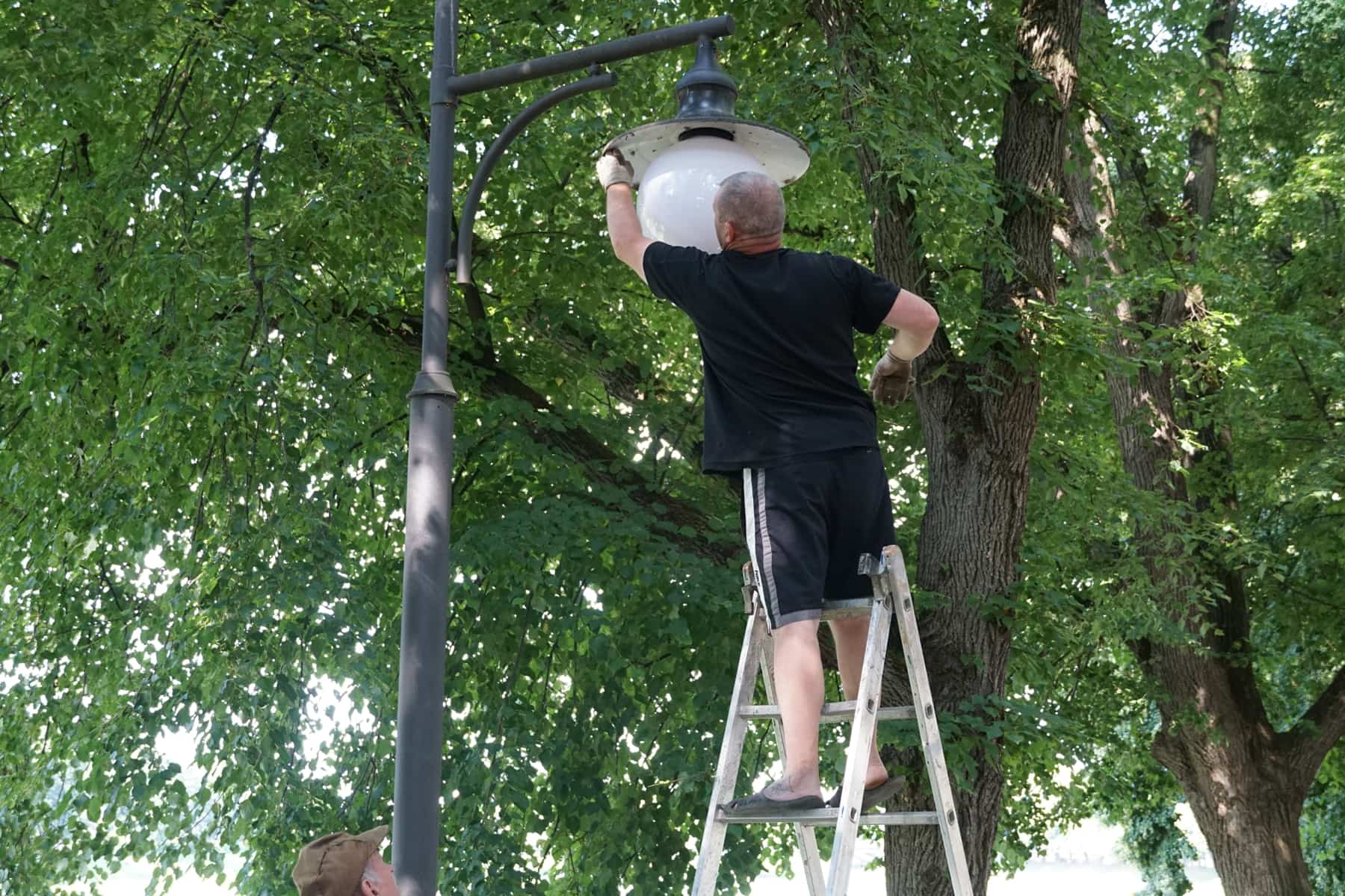 На набережній Незалежності в Ужгороді замінюють плафони світильників зовнішнього освітлення
