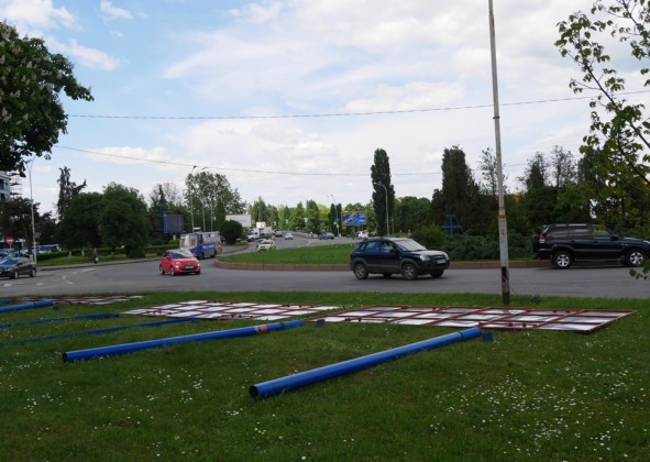 Ще 5 рекламоносіїв демонтували сьогодні в Ужгороді – на площі Б. Хмельницького власники на прохання міської ради прибрали величезні білборди, які заважали оглядовості руху для водіїв.