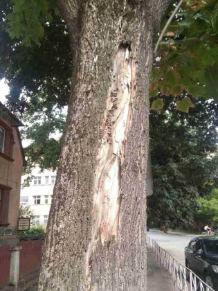 На світлинах – дерева на площі Дружби народів після негоди у червні та пошкодження, зафіксовані під час обстеження.