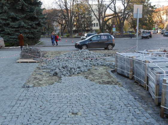 На площі Поштовій в Ужгороді тротуар викладуть із нового матеріалу – гранітних плит та брущатки для мощення із габро