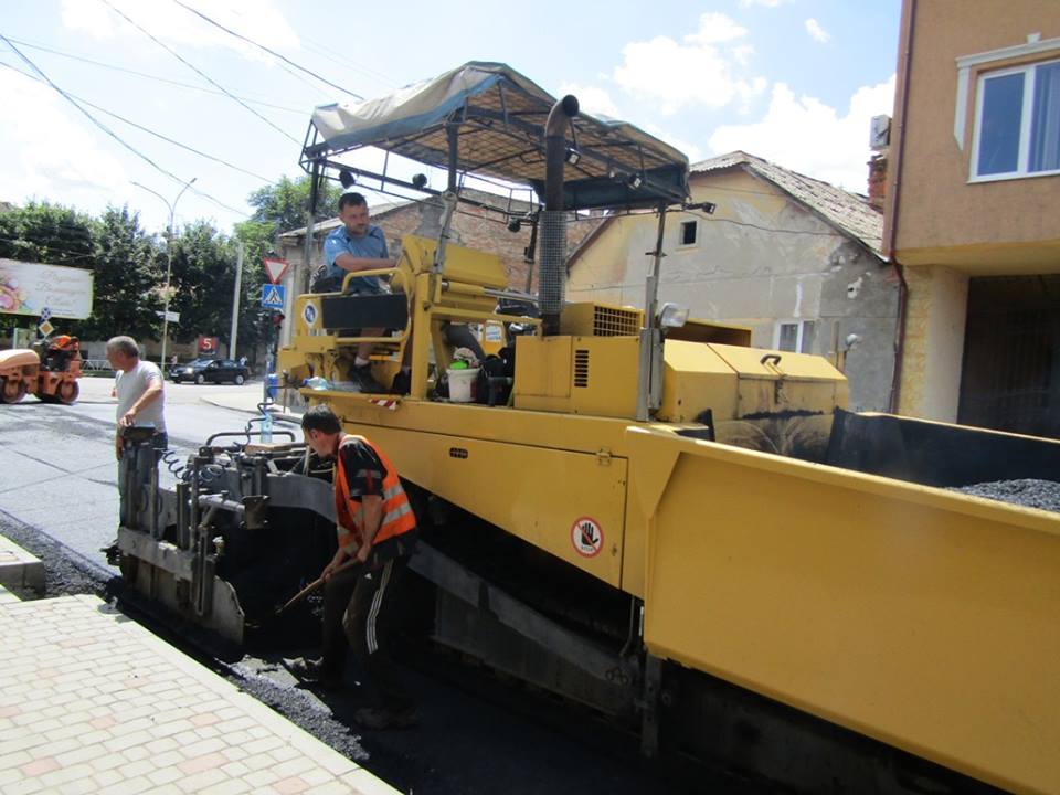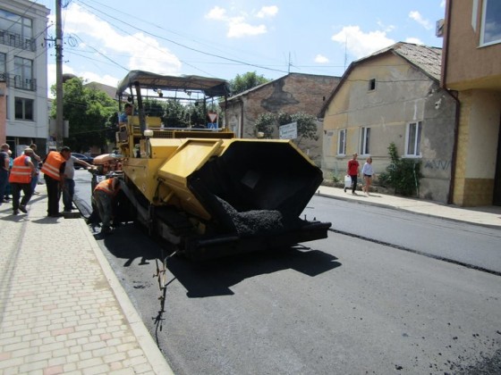 На вулиці Берчені в Ужгороді продовжують асфальтувати проїжджу частину